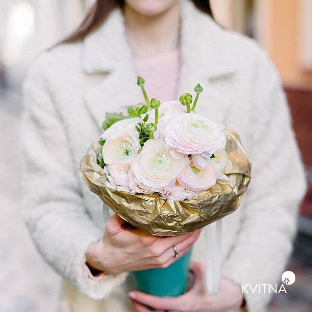 - Як замовити Моно букет із ранунклюсів Cloony Hanoy в фірмовому пакунку? ❯