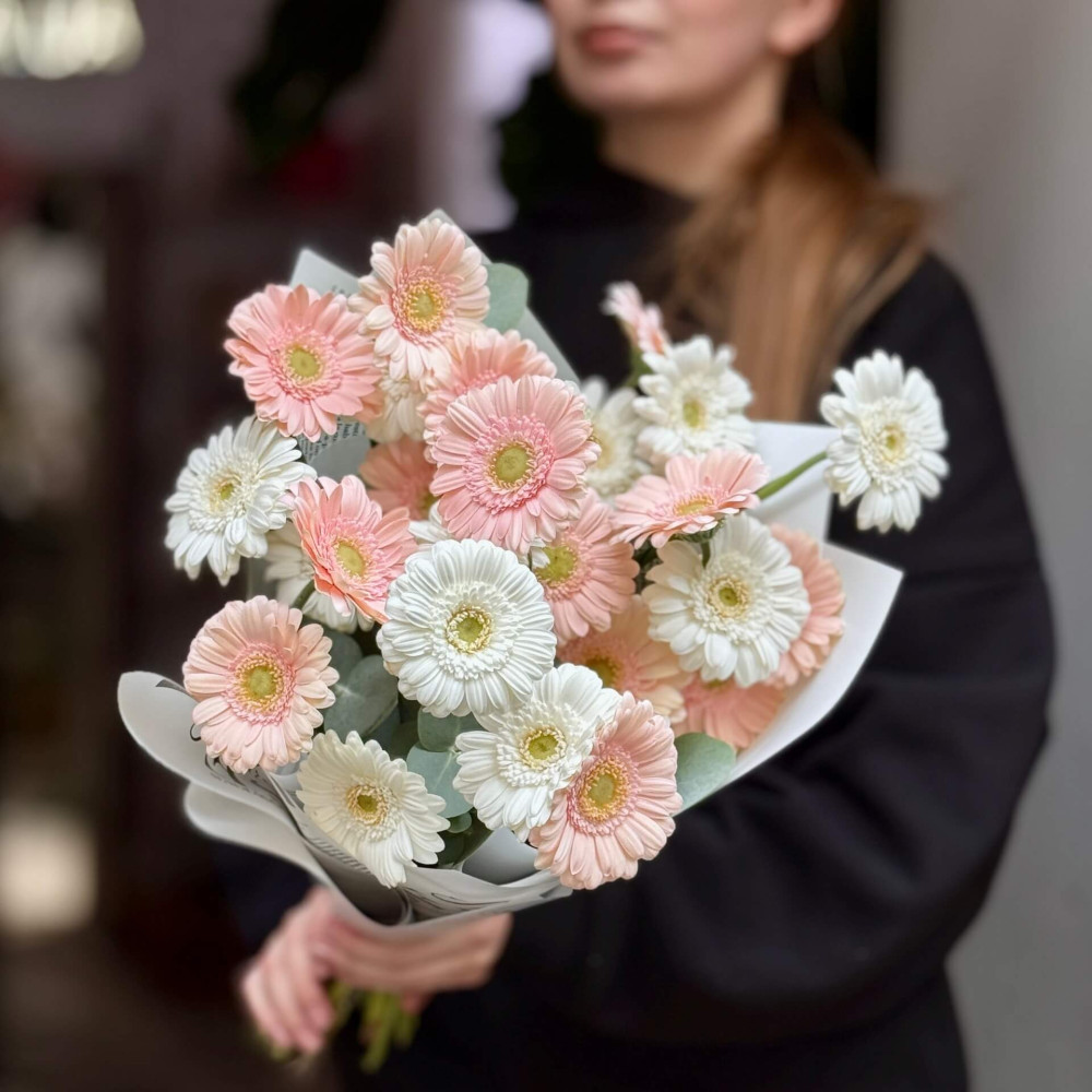 - Як замовити Милий букет із 25 гербер сортів Lobby та Alix Noor «Пудрове кохання»? ❯