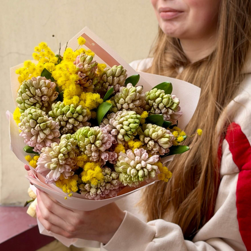 - Як замовити Милий букет із гіацинтів та мімози «Запашний дотик»? ❯