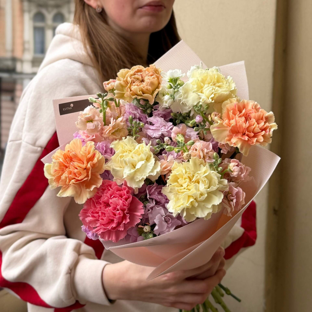 І це, до речі, зовсім не обов'язково плюси, це особливості, які потрібно розуміти. Тоді і вибір «де купити букет у Львові» зробити буде значно простіше.- Кожен букет Kvitna унікальний. Це означає, якщо Ви замовите у нас якийсь із букетів на сайті, то Ви не отримаєте точнісінько такий же. Деяких це бентежить, такі люди не хочуть «ризикувати», бажають «в точності, як на світлині». У «Квітна» кожен букет — це творчий пошук, це захоплення, злиття з квітами, образом одержувача і завданням. Так, ми можемо прийняти за вектор, зробити схожий букет, в тому ж стилі, кольоровій гамі, з тих самих квітів ... Але нам нудно робити за шаблоном. Адже букет, представлений на зображенні, робився для іншої людини, з іншого приводу, під інший настрій і натхнення. У Вас буде все по-іншому.