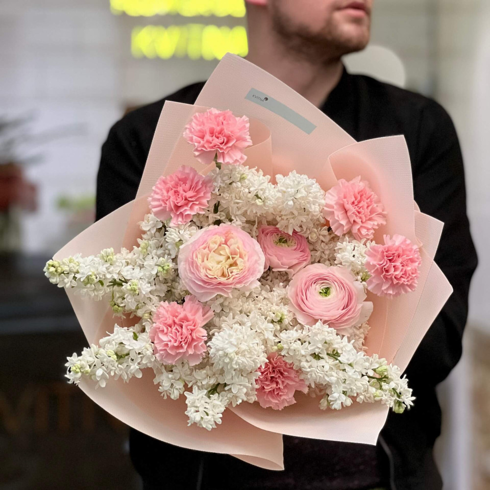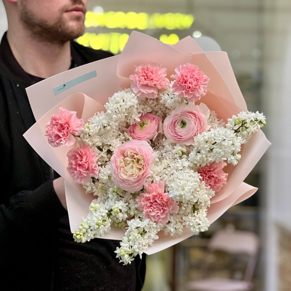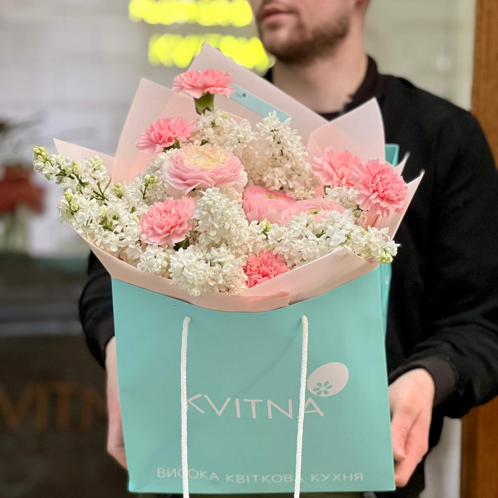 Квіти: Ранункулюс, Бузок, Діантус (Гвоздика)