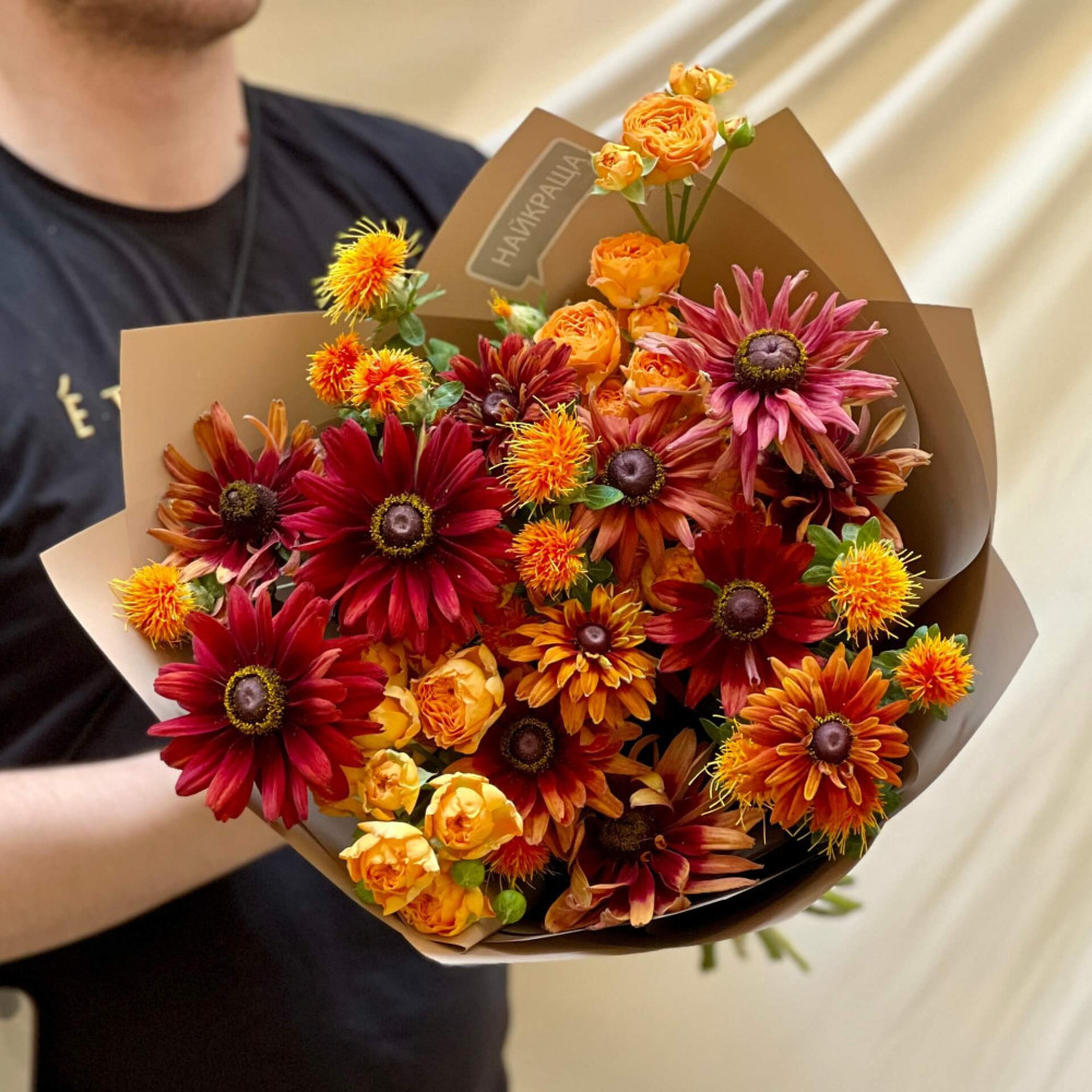 - А ще в конверт ми покладемо сюрприз! Який – ми не скажемо (інакше який це сюрприз), але можемо натякнути – можна на 100% гарантувати, що Ваш букет запам'ятають надовго!
