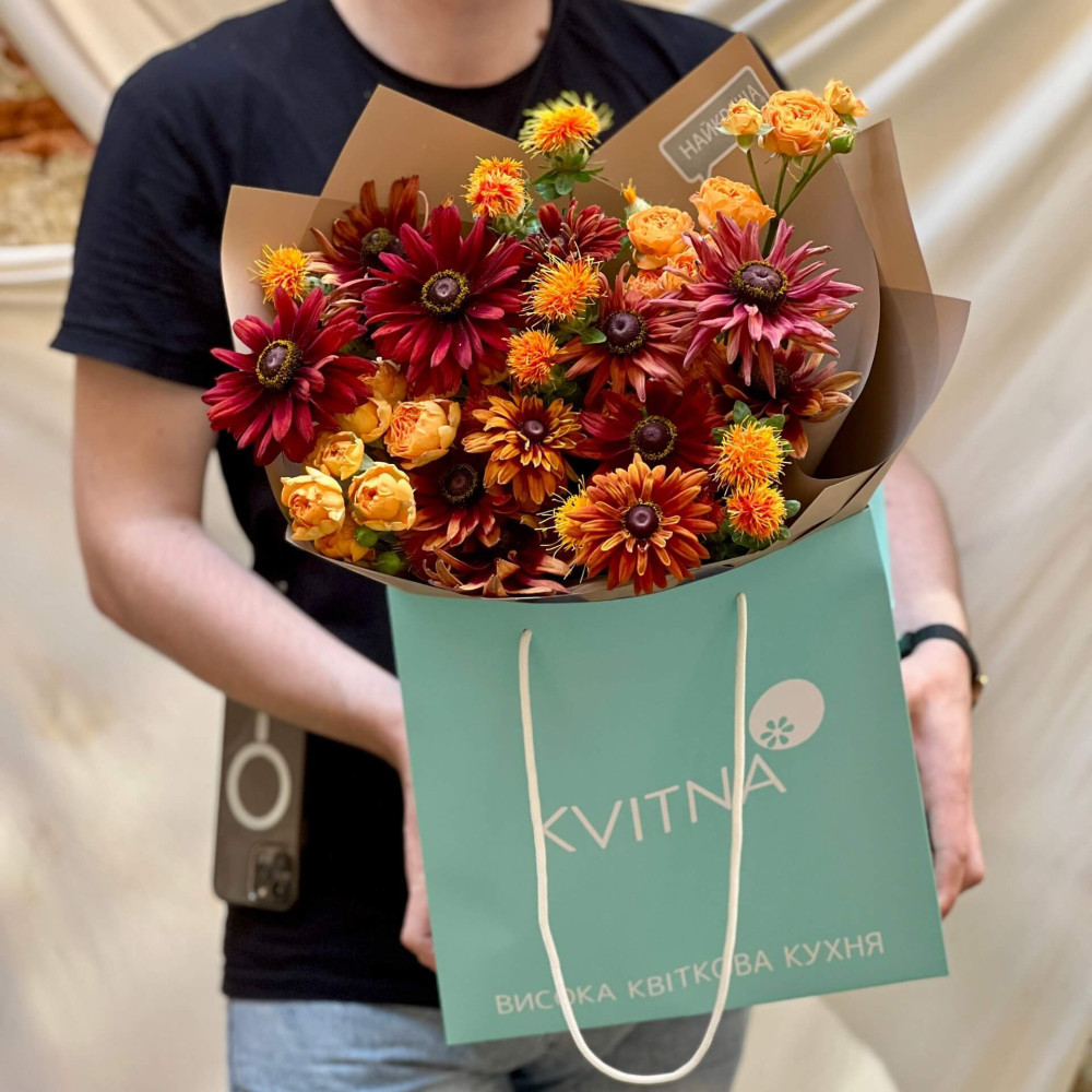 - Букети від Kvitna доставляються у фірмовому пакуванні, яке потрібно зняти при установці квітів у вазу. Не зрізайте стрічку, звʼязуючу букет, щоб зберегти його форму.