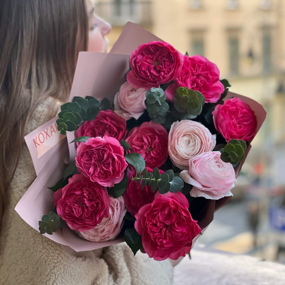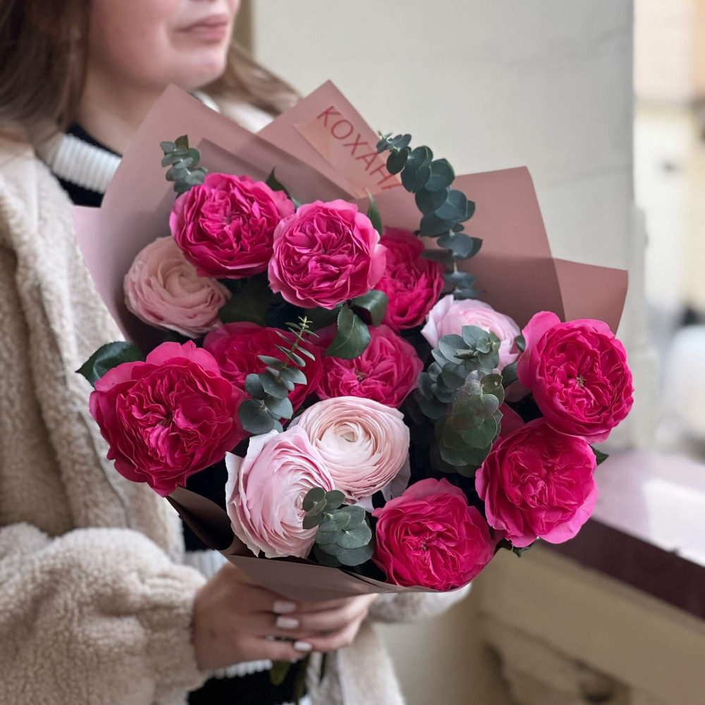 Квіти: Троянда піоновидна, Ранункулюс, Евкаліпт