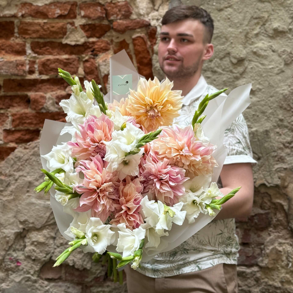 І це, до речі, зовсім не обов'язково плюси, це особливості, які потрібно розуміти. Тоді і вибір «де купити букет у Львові» зробити буде значно простіше.- Кожен букет Kvitna унікальний. Це означає, якщо Ви замовите у нас якийсь із букетів на сайті, то Ви не отримаєте точнісінько такий же. Деяких це бентежить, такі люди не хочуть «ризикувати», бажають «в точності, як на світлині». У «Квітна» кожен букет — це творчий пошук, це захоплення, злиття з квітами, образом одержувача і завданням. Так, ми можемо прийняти за вектор, зробити схожий букет, в тому ж стилі, кольоровій гамі, з тих самих квітів ... Але нам нудно робити за шаблоном. Адже букет, представлений на зображенні, робився для іншої людини, з іншого приводу, під інший настрій і натхнення. У Вас буде все по-іншому.