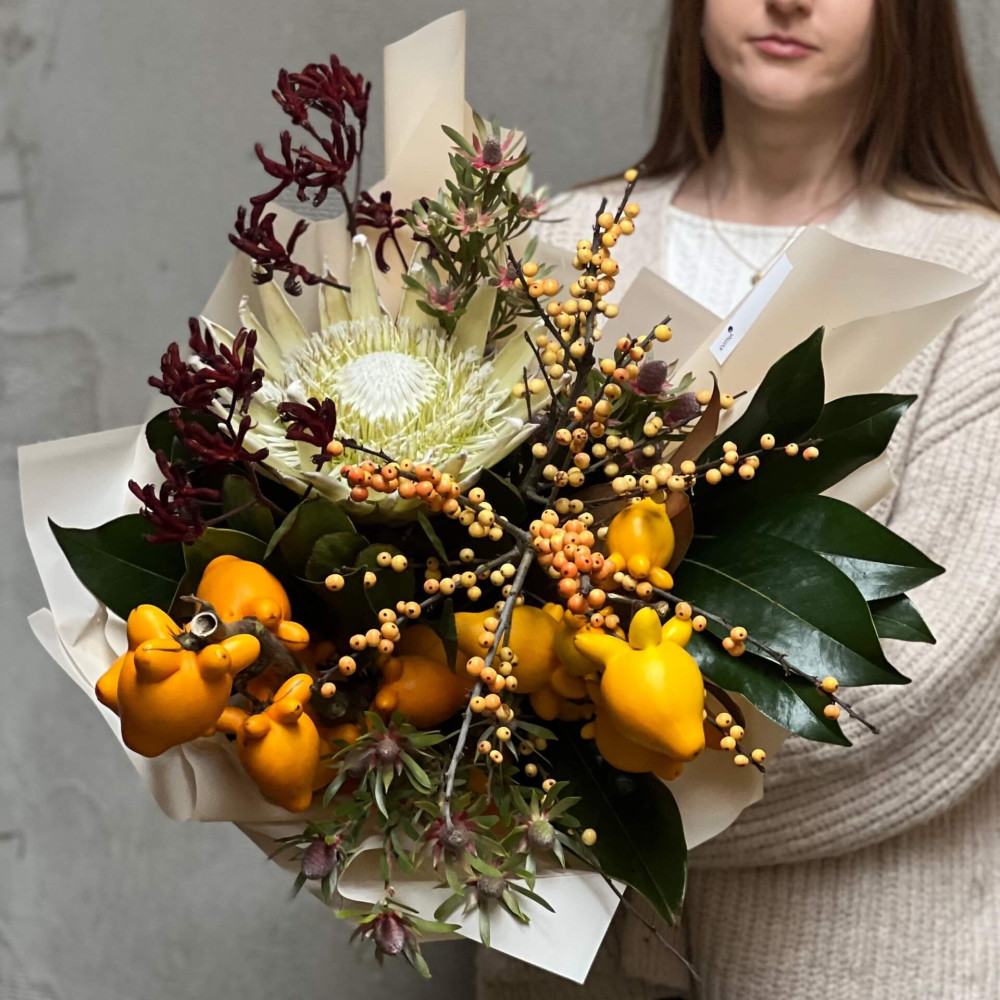 Квіти: Протея, Леукадендрон, Анігозантус, Ілекс, Магнолія, Соланум
