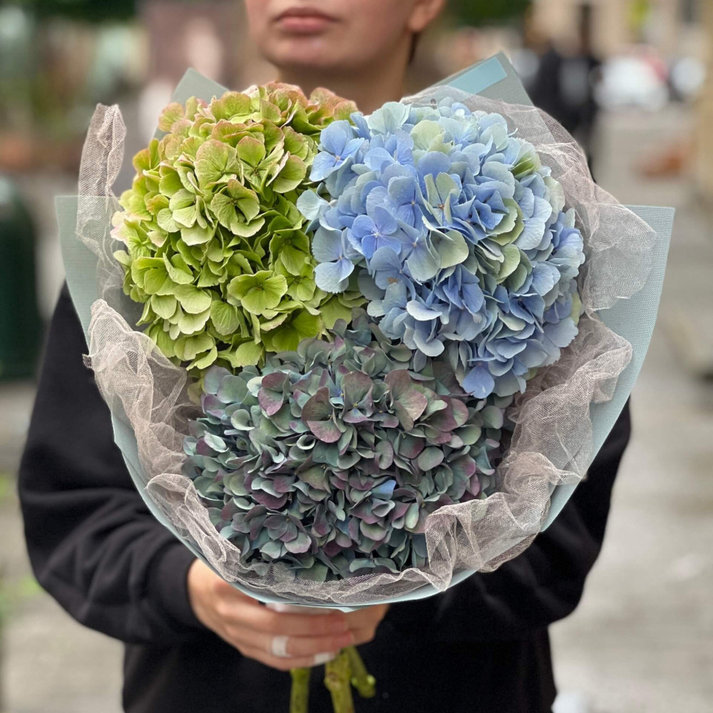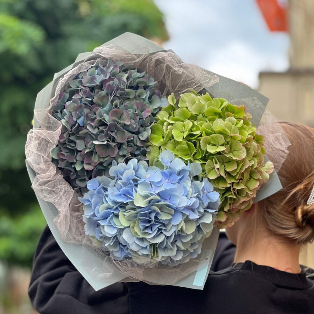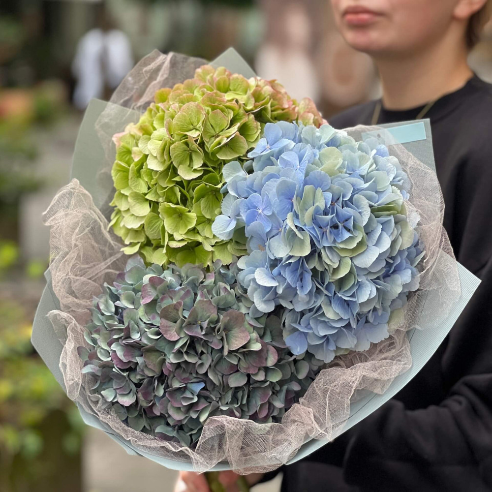 - Як замовити Незвичний мікс гортензій у букеті «Лісовий туман»? ❯