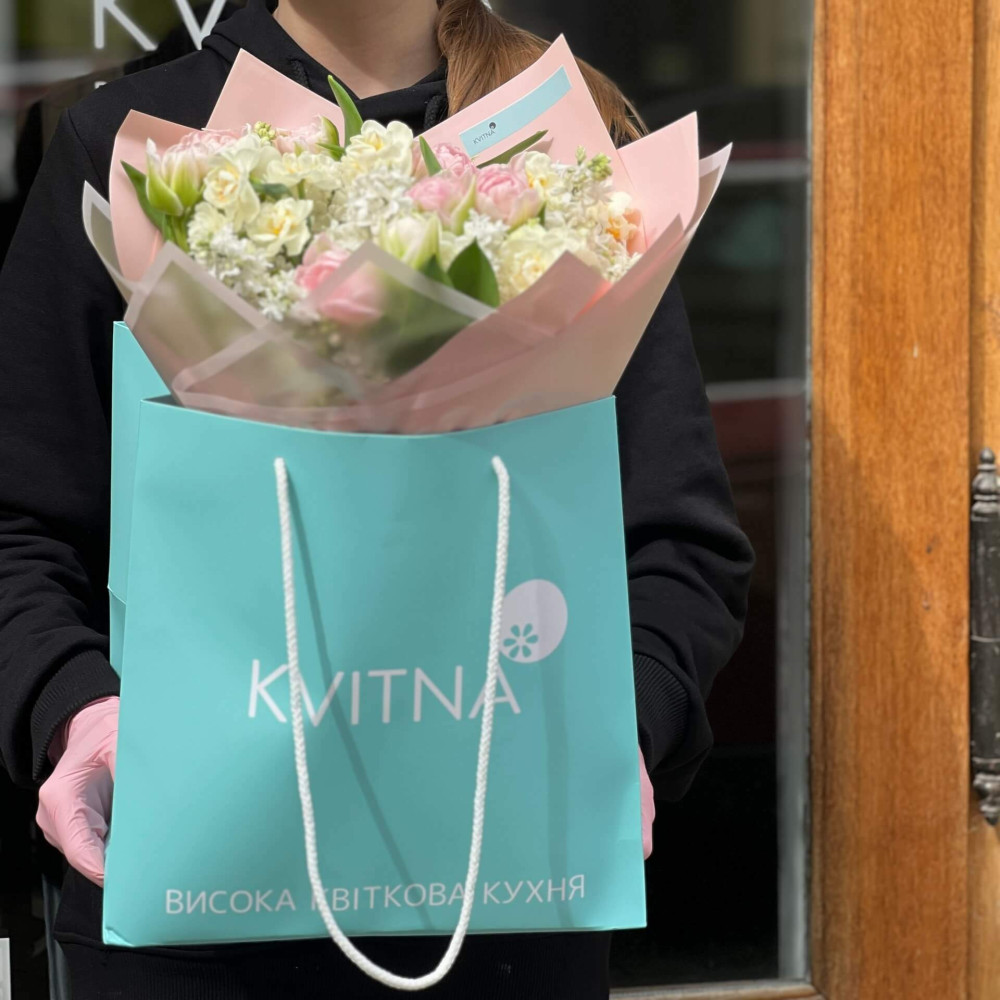 І це, до речі, зовсім не обов'язково плюси, це особливості, які потрібно розуміти. Тоді і вибір «де купити букет у Львові» зробити буде значно простіше.- Кожен букет Kvitna унікальний. Це означає, якщо Ви замовите у нас якийсь із букетів на сайті, то Ви не отримаєте точнісінько такий же. Деяких це бентежить, такі люди не хочуть «ризикувати», бажають «в точності, як на світлині». У «Квітна» кожен букет — це творчий пошук, це захоплення, злиття з квітами, образом одержувача і завданням. Так, ми можемо прийняти за вектор, зробити схожий букет, в тому ж стилі, кольоровій гамі, з тих самих квітів ... Але нам нудно робити за шаблоном. Адже букет, представлений на зображенні, робився для іншої людини, з іншого приводу, під інший настрій і натхнення. У Вас буде все по-іншому.