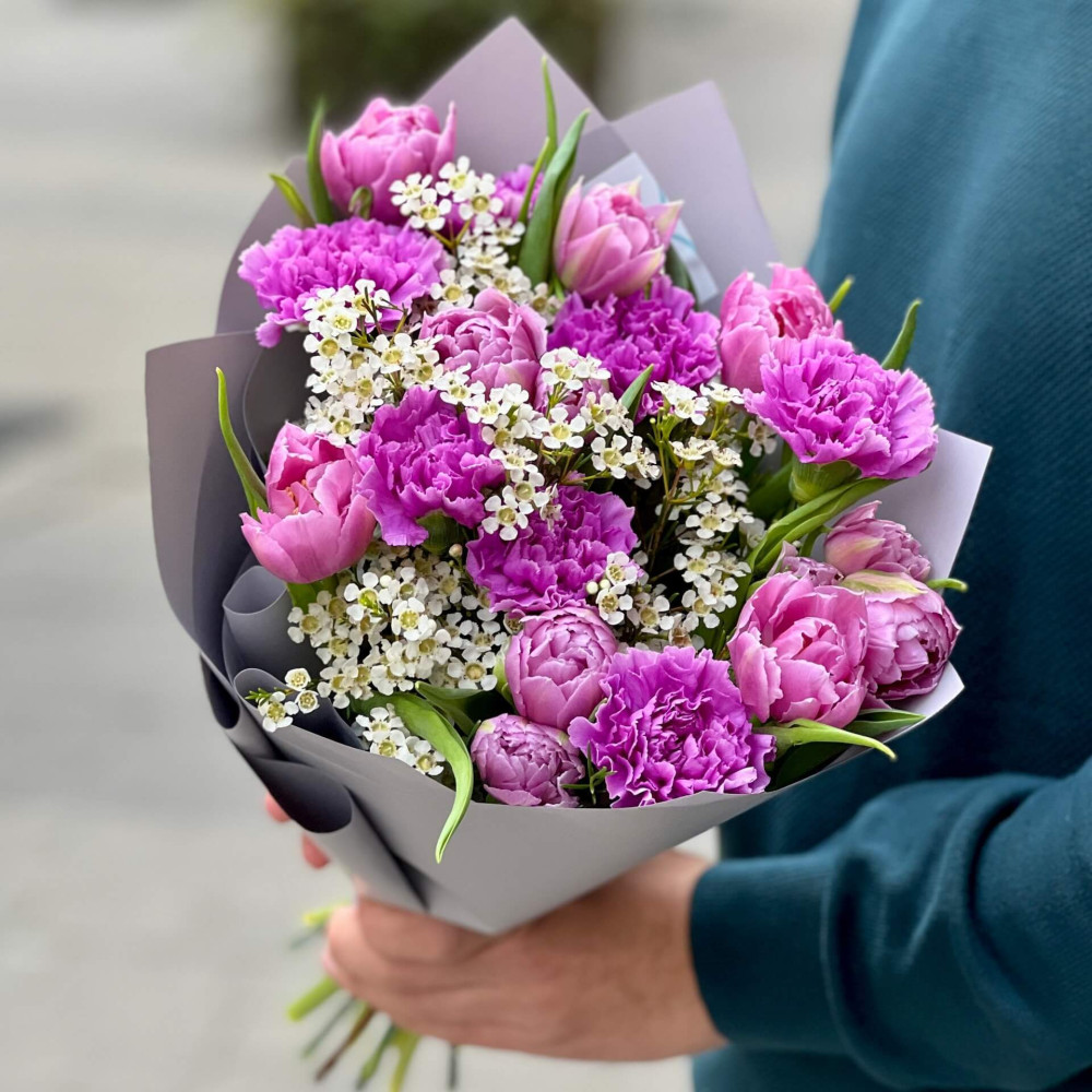 Квіти: Тюльпан піоновидний, Хамелаціум, Діантус (Гвоздика)
