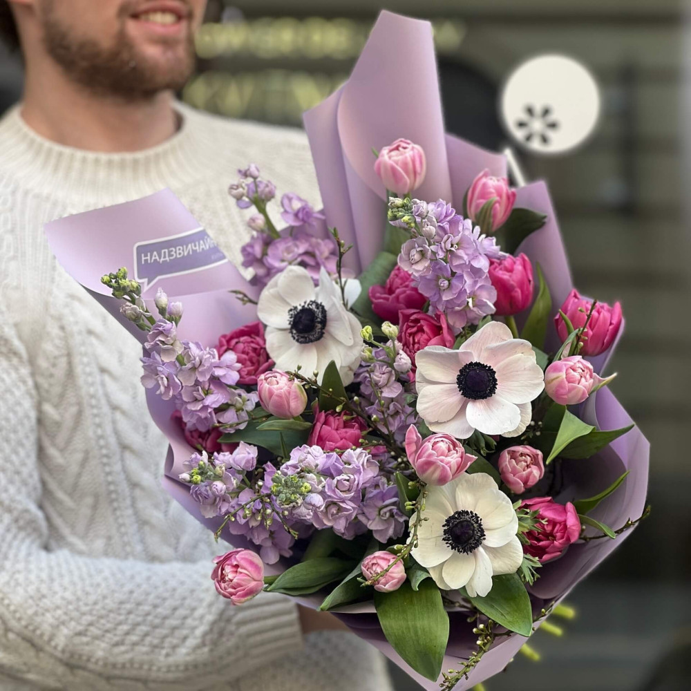 Квіти: Тюльпан, Анемон, Матіола, Прунус