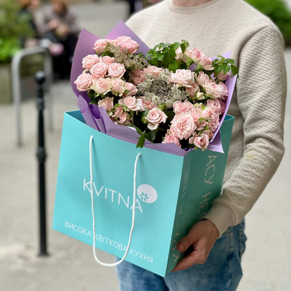 - Букети від Kvitna доставляються у фірмовому пакуванні, яке потрібно зняти при установці квітів у вазу. Не зрізайте стрічку, звʼязуючу букет, щоб зберегти його форму.