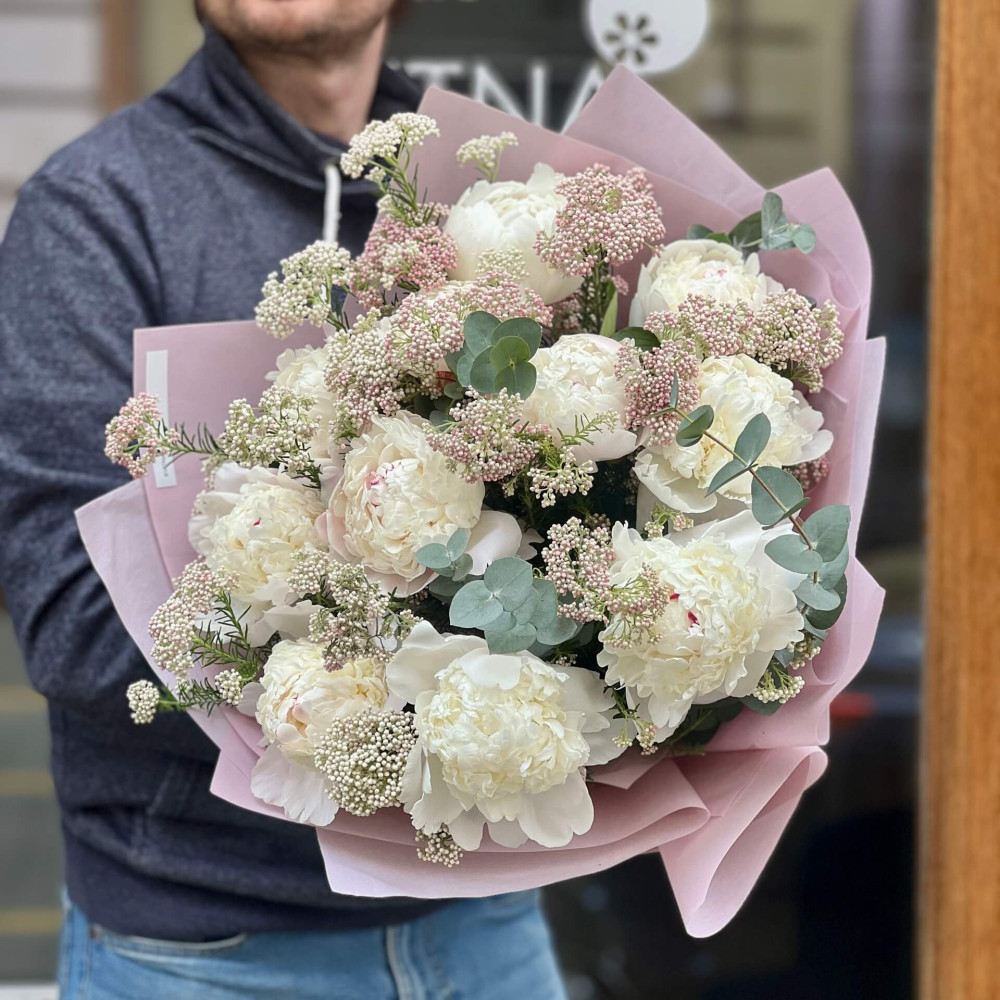 Квіти: Півонія, Евкаліпт, Озотамнус