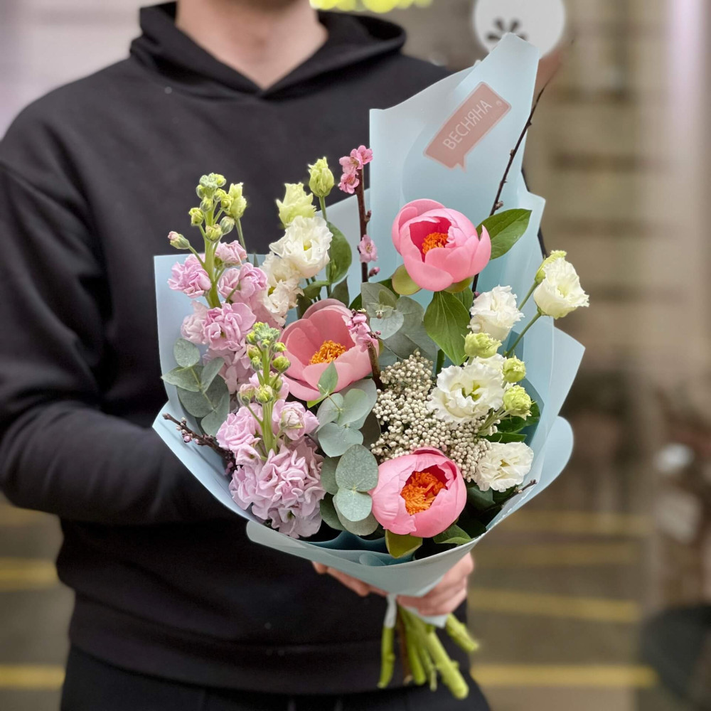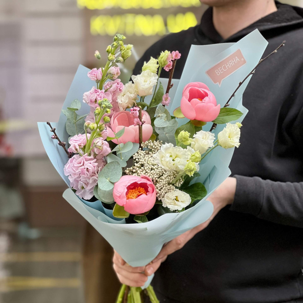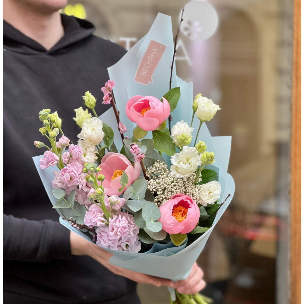 Квіти: Півонія, Матіола, Прунус, Озотамнус, Еустома, Евкаліпт