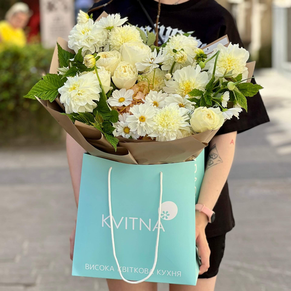 І це, до речі, зовсім не обов'язково плюси, це особливості, які потрібно розуміти. Тоді і вибір «де купити букет у Львові» зробити буде значно простіше.- Кожен букет Kvitna унікальний. Це означає, якщо Ви замовите у нас якийсь із букетів на сайті, то Ви не отримаєте точнісінько такий же. Деяких це бентежить, такі люди не хочуть «ризикувати», бажають «в точності, як на світлині». У «Квітна» кожен букет — це творчий пошук, це захоплення, злиття з квітами, образом одержувача і завданням. Так, ми можемо прийняти за вектор, зробити схожий букет, в тому ж стилі, кольоровій гамі, з тих самих квітів ... Але нам нудно робити за шаблоном. Адже букет, представлений на зображенні, робився для іншої людини, з іншого приводу, під інший настрій і натхнення. У Вас буде все по-іншому.