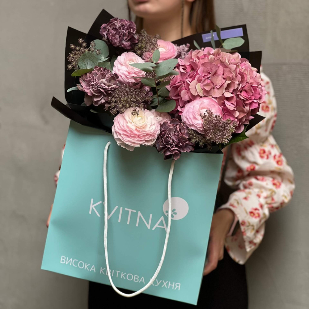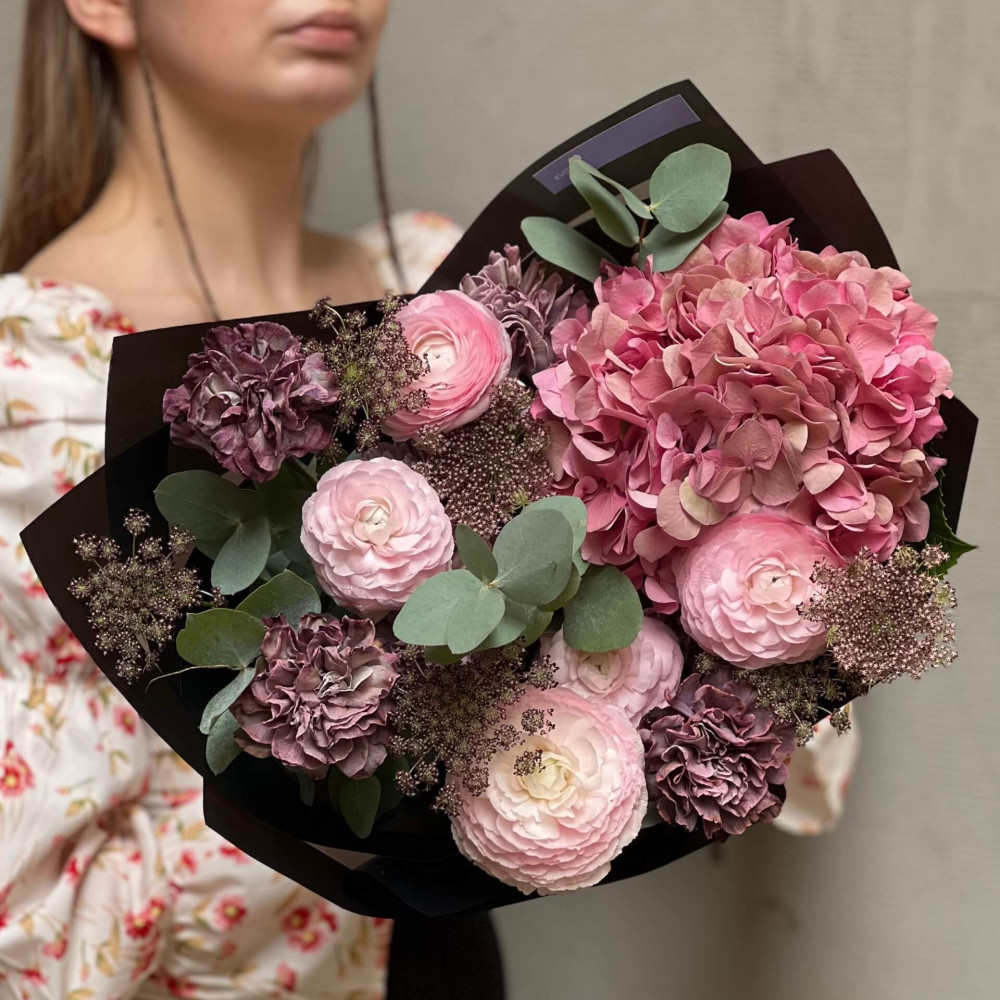 Квіти: Евкаліпт, Гортензія, Діантус (Гвоздика), Ранункулюс, Даукус