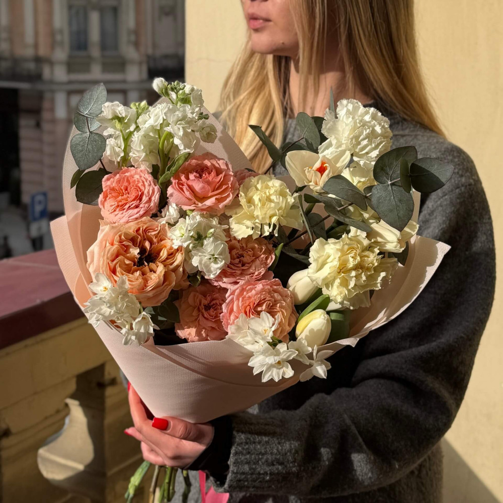 І це, до речі, зовсім не обов'язково плюси, це особливості, які потрібно розуміти. Тоді і вибір «де купити букет у Львові» зробити буде значно простіше.- Кожен букет Kvitna унікальний. Це означає, якщо Ви замовите у нас якийсь із букетів на сайті, то Ви не отримаєте точнісінько такий же. Деяких це бентежить, такі люди не хочуть «ризикувати», бажають «в точності, як на світлині». У «Квітна» кожен букет — це творчий пошук, це захоплення, злиття з квітами, образом одержувача і завданням. Так, ми можемо прийняти за вектор, зробити схожий букет, в тому ж стилі, кольоровій гамі, з тих самих квітів ... Але нам нудно робити за шаблоном. Адже букет, представлений на зображенні, робився для іншої людини, з іншого приводу, під інший настрій і натхнення. У Вас буде все по-іншому.