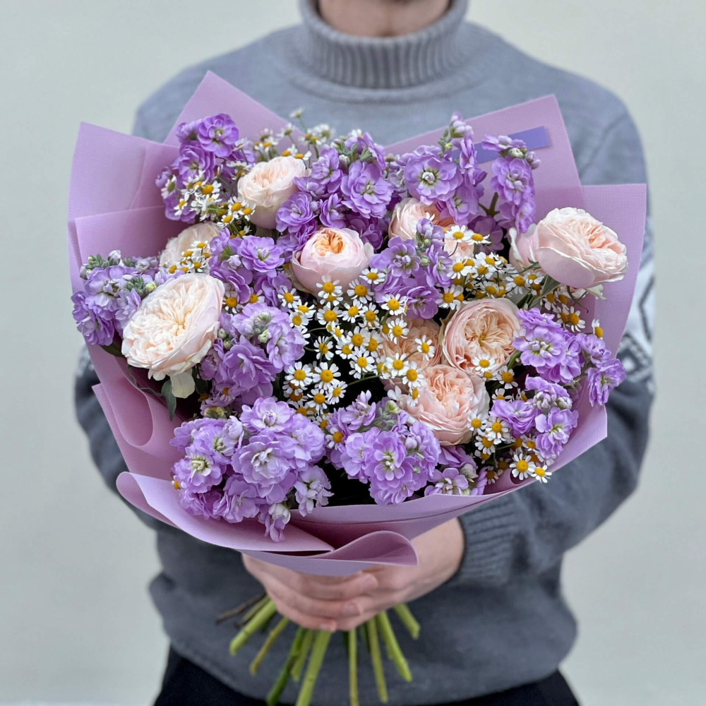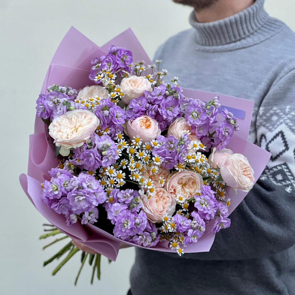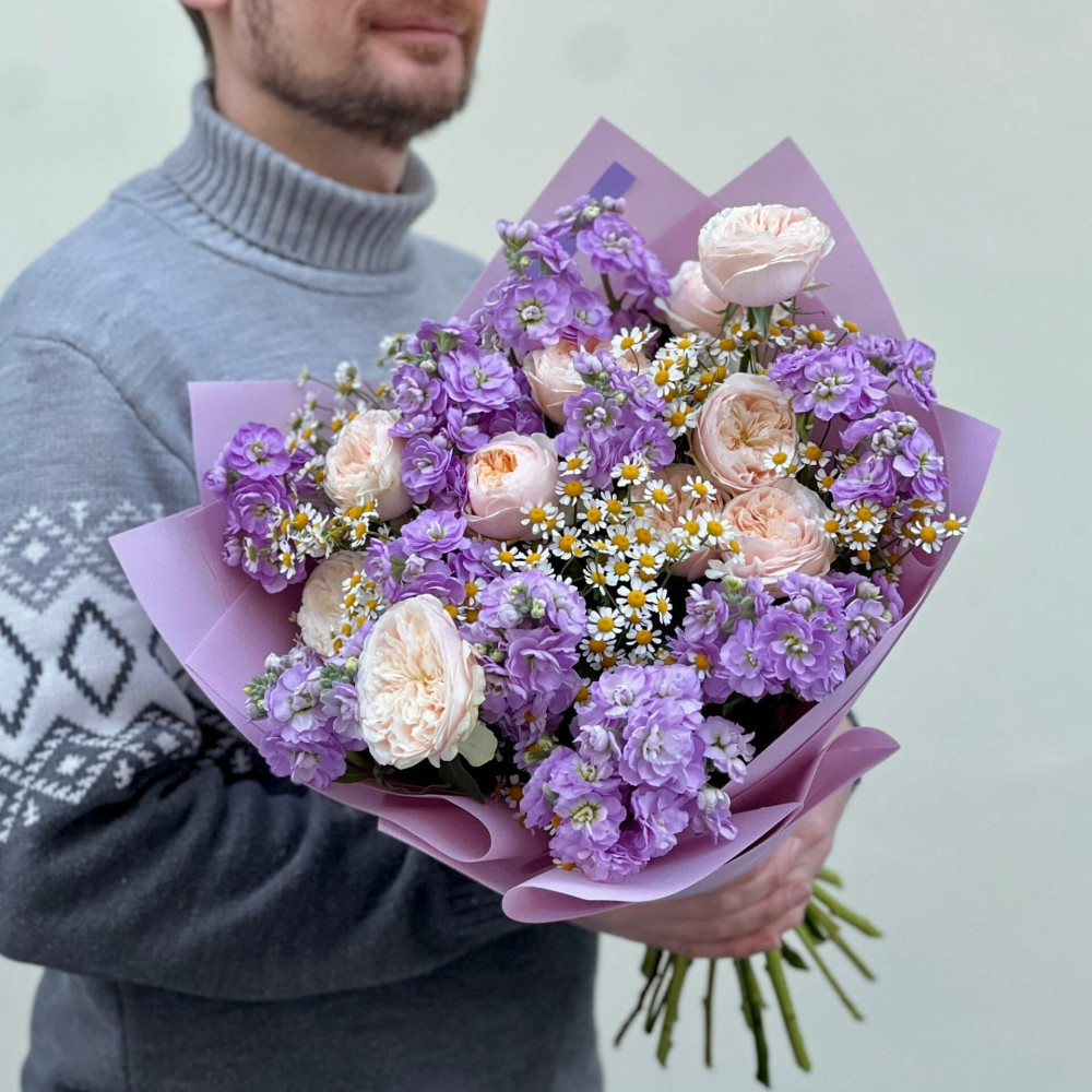 - Як замовити Ніжний букет з ароматною матіолою та танацетумом «Засніжене поле»? ❯