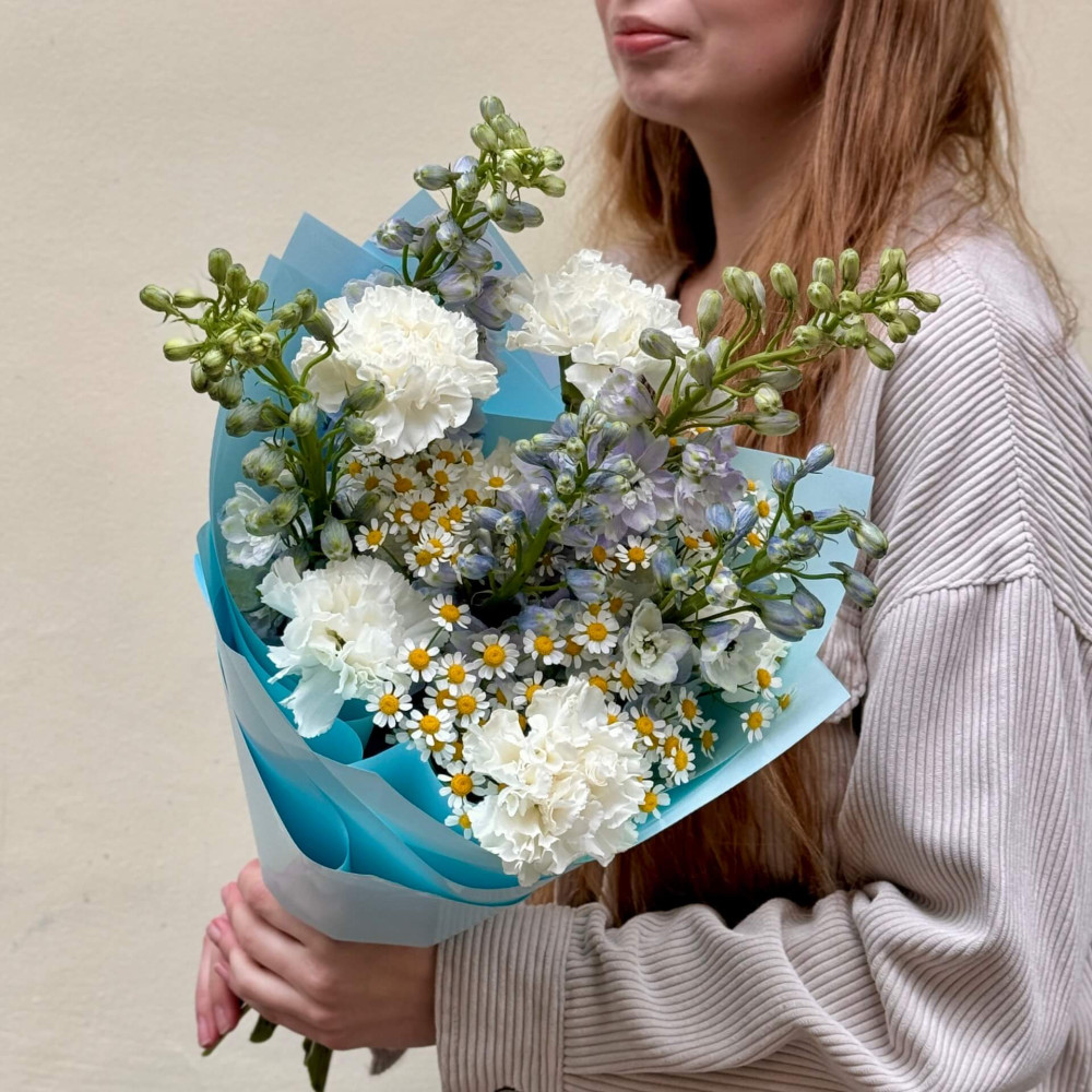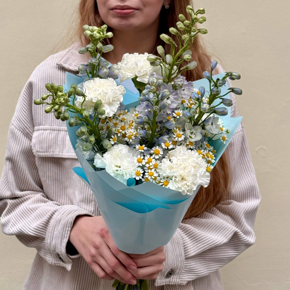 - Як замовити Ніжний букет з дельфініумом «Блакитний вітерець»? ❯