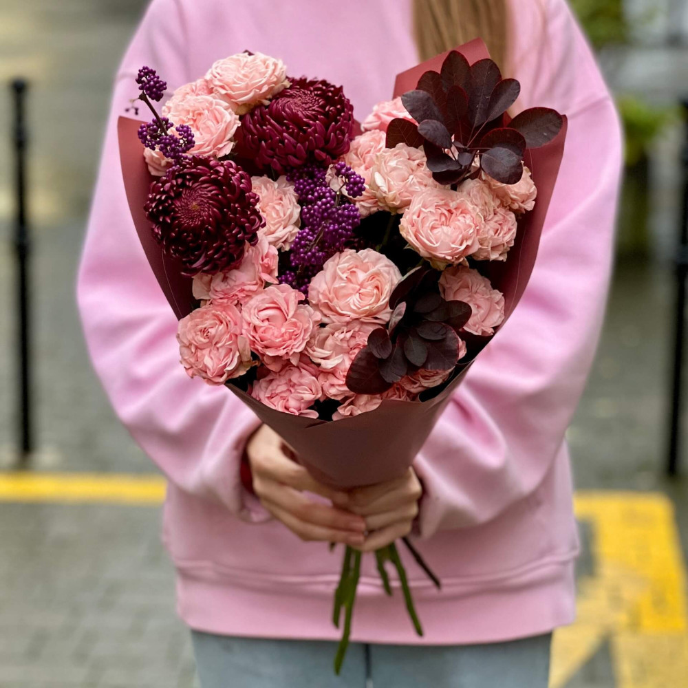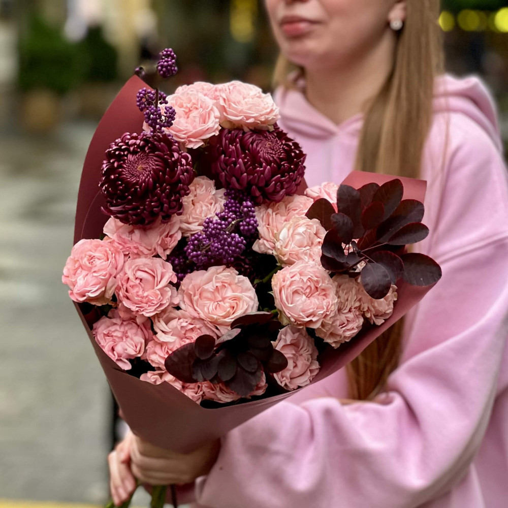 - Як замовити Ніжний букет з хризантемою Bigoudi «Трояндові сутінки»? ❯