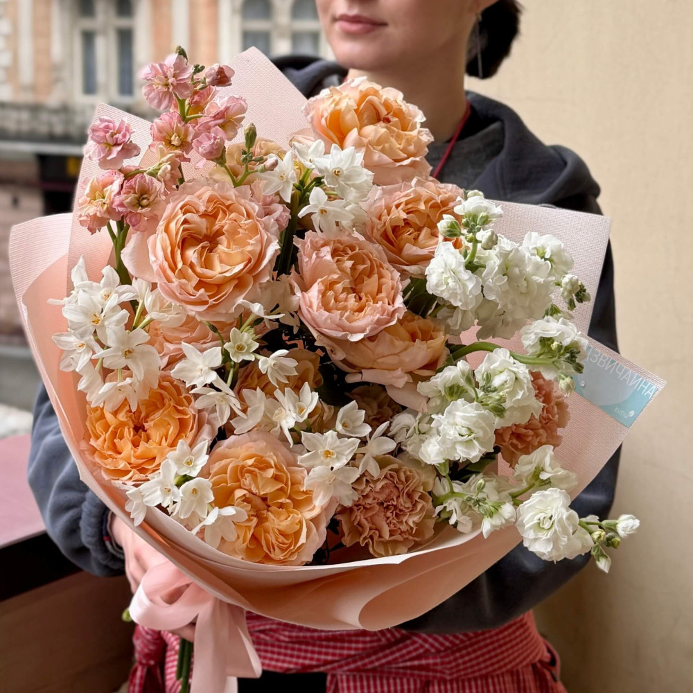 - Як замовити Ніжний букет з кущовою піоновидною трояндою «Ніжнесенький красунчик»? ❯
