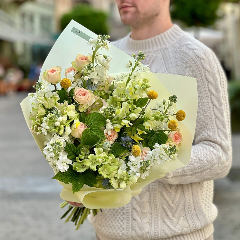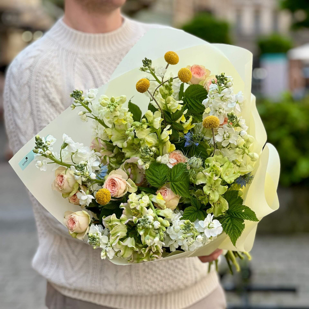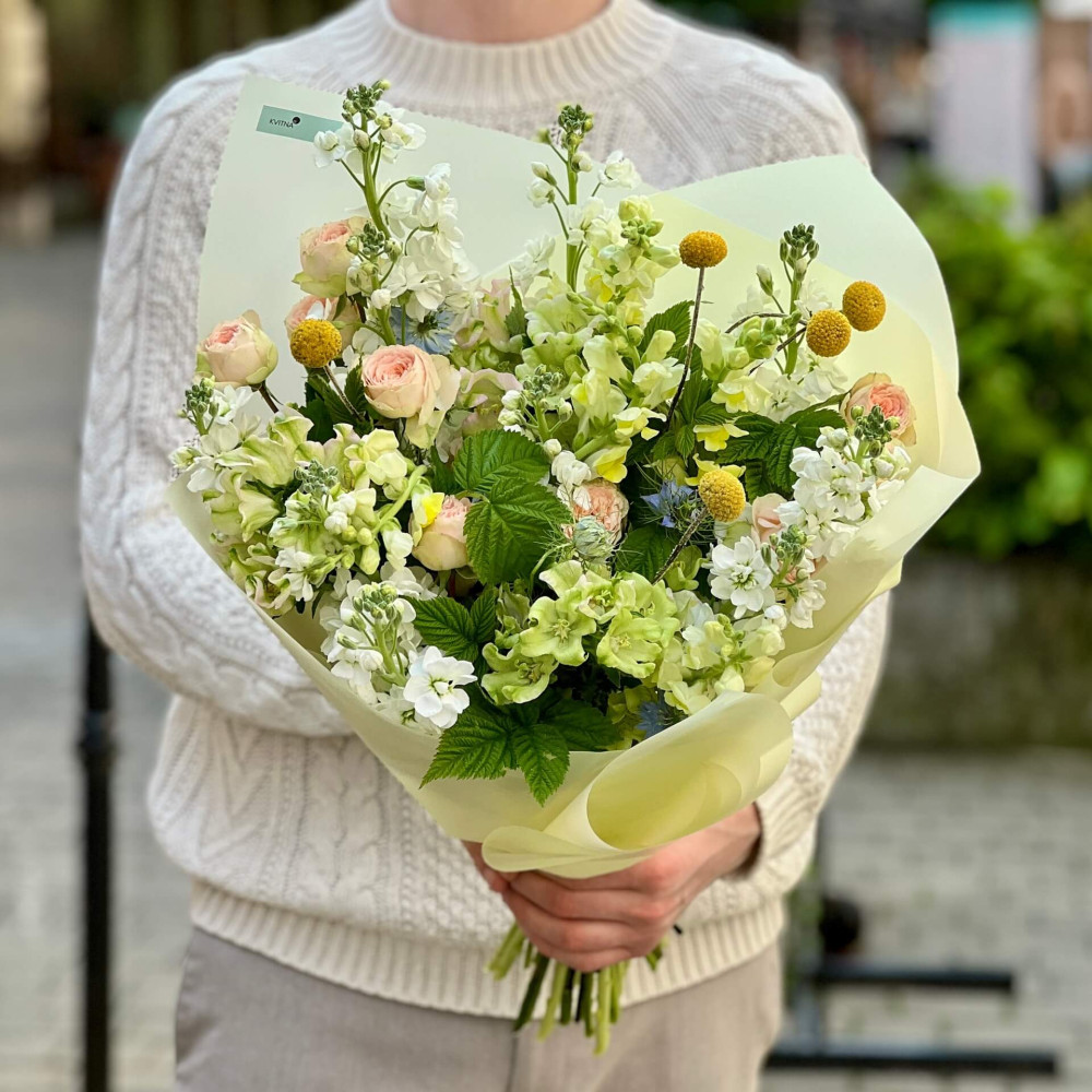 І це, до речі, зовсім не обов'язково плюси, це особливості, які потрібно розуміти. Тоді і вибір «де купити букет у Львові» зробити буде значно простіше.- Кожен букет Kvitna унікальний. Це означає, якщо Ви замовите у нас якийсь із букетів на сайті, то Ви не отримаєте точнісінько такий же. Деяких це бентежить, такі люди не хочуть «ризикувати», бажають «в точності, як на світлині». У «Квітна» кожен букет — це творчий пошук, це захоплення, злиття з квітами, образом одержувача і завданням. Так, ми можемо прийняти за вектор, зробити схожий букет, в тому ж стилі, кольоровій гамі, з тих самих квітів ... Але нам нудно робити за шаблоном. Адже букет, представлений на зображенні, робився для іншої людини, з іншого приводу, під інший настрій і натхнення. У Вас буде все по-іншому.