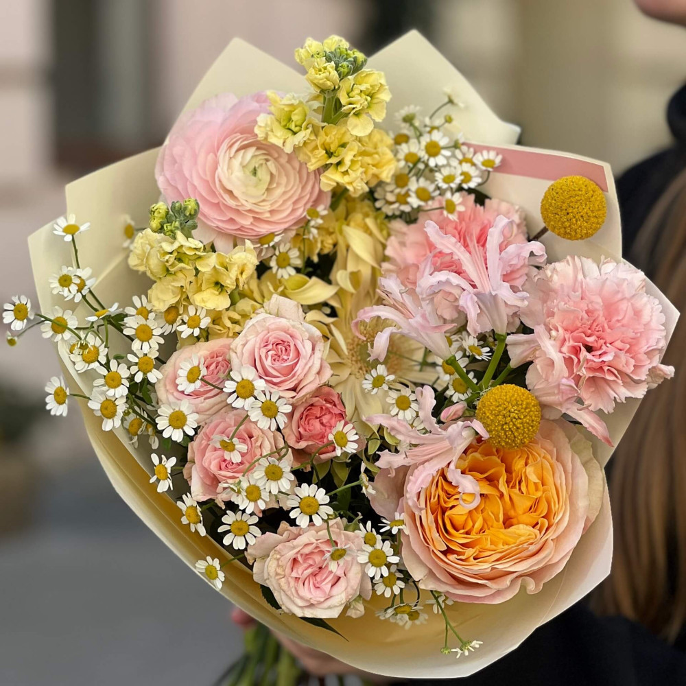 Залежно від сезонності і наявності квітів ми залишаємо за собою право змінювати склад букета без повідомлення замовника, зберігаючи при цьому авторський стиль, колірне рішення, концепцію букета. У разі, якщо необхідна заміна базової квітки, заміна відбувається з узгодженням із замовником. Якщо для Вас критично важлива присутність в складі певної квіточки – обов'язково зв'яжіться з нами та повідомте про це.