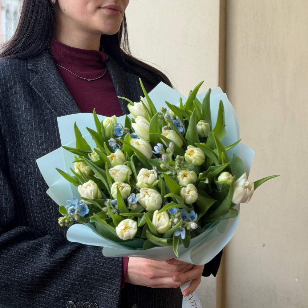 FAQ по Ніжний букет з тюльпанами і оксіпеталумом «Для блакитноокої красуні»