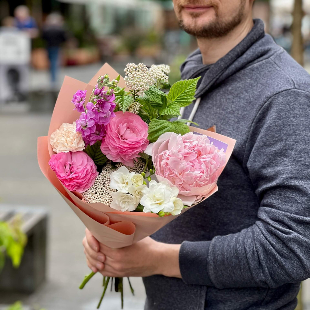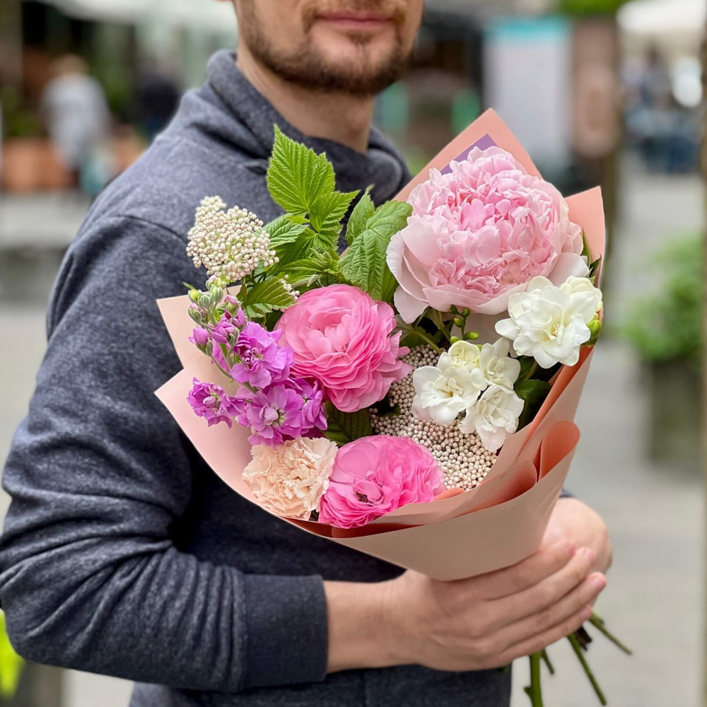 - Як замовити Ніжний весняний букет з ранункулюсами та півонією «Чарівний комплімент»? ❯