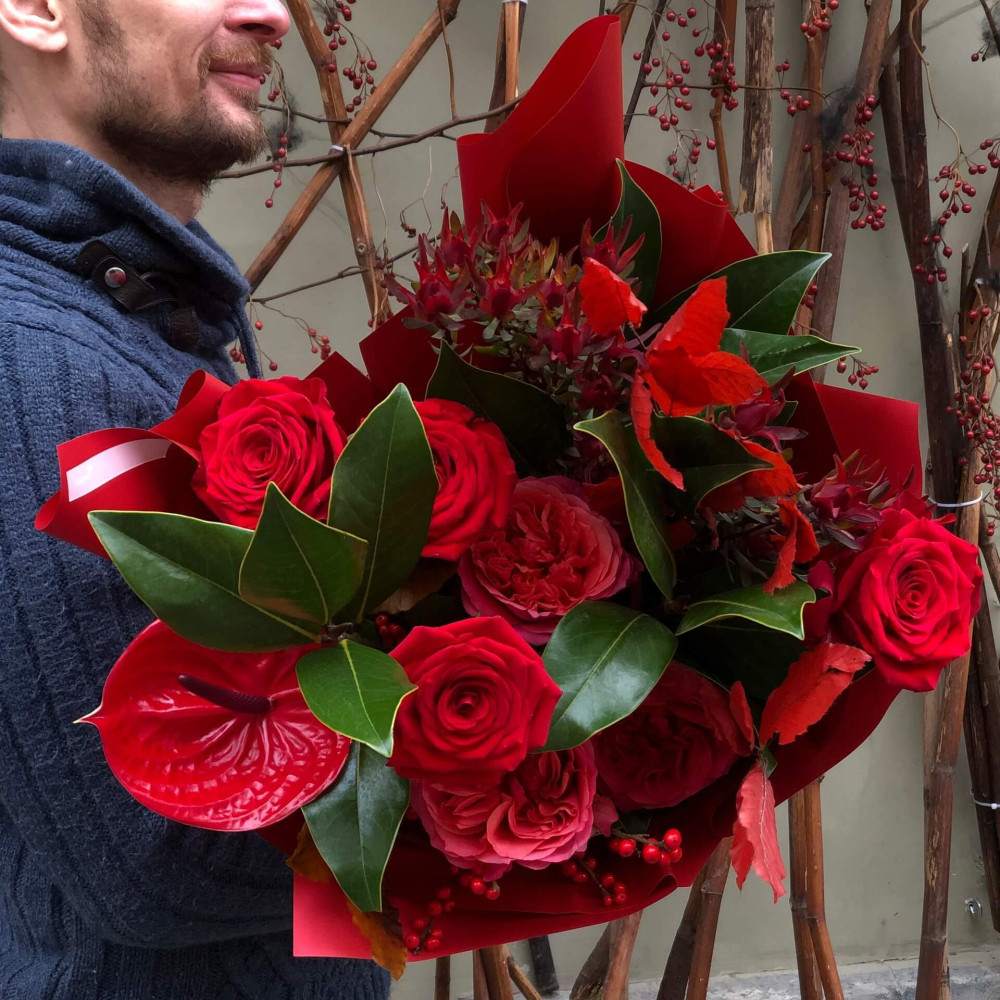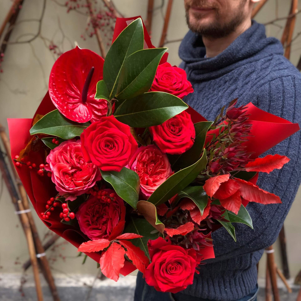 Квіти: Ілекс, Антуріум, Магнолія, Троянда, Троянда піоновидна, Леукадендрон, Листя бука