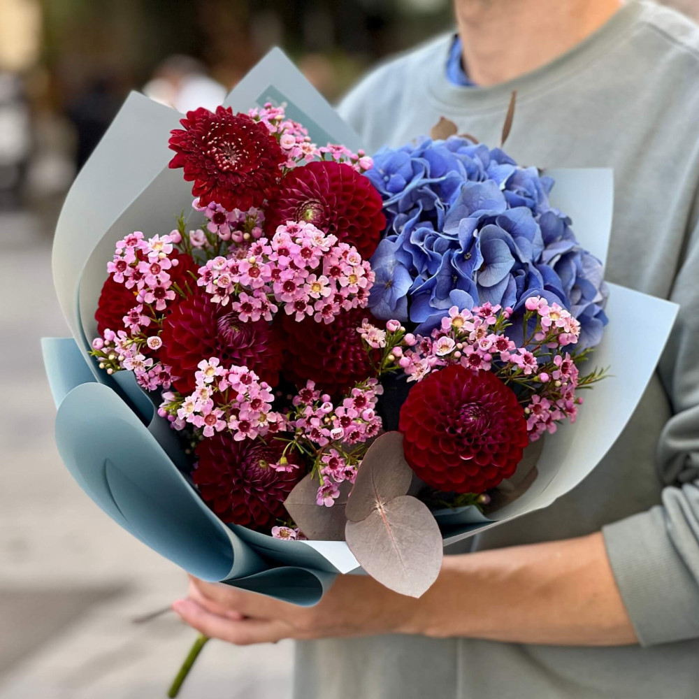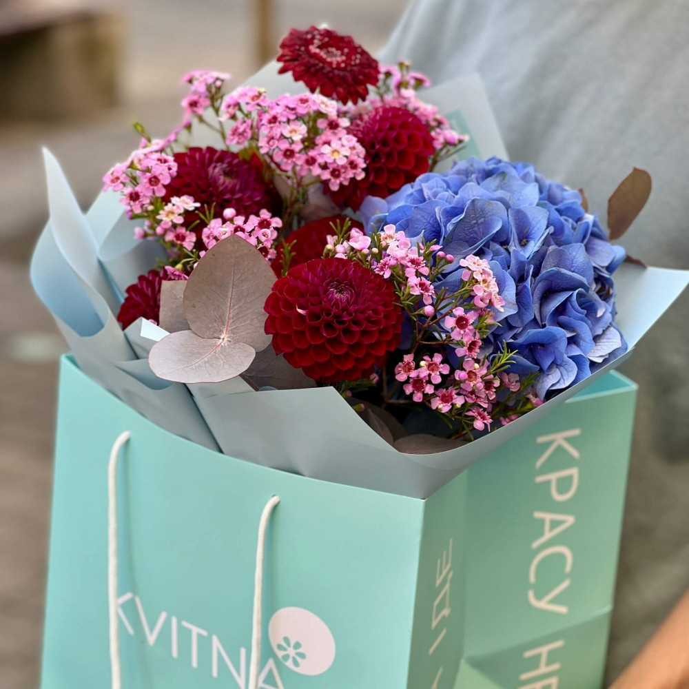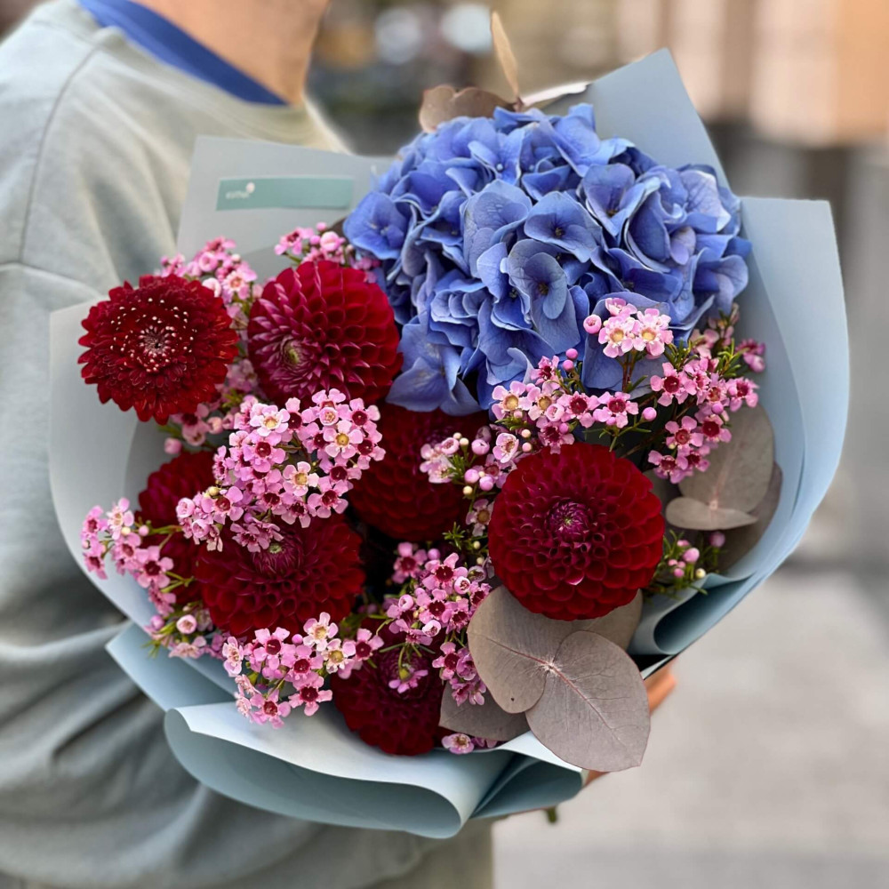 Квіти: Жоржина, Евкаліпт, Хамелаціум, Гортензія