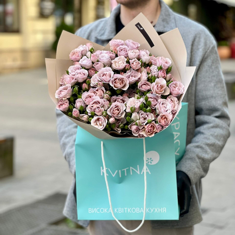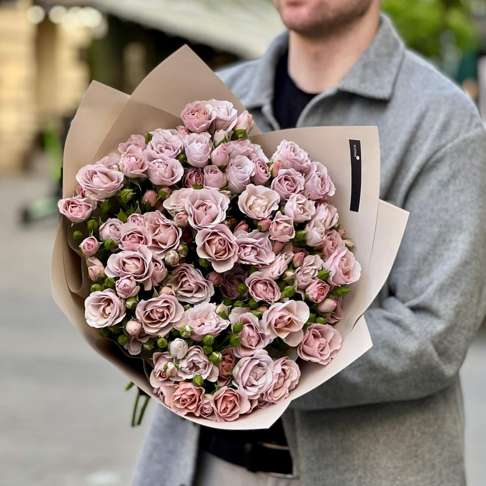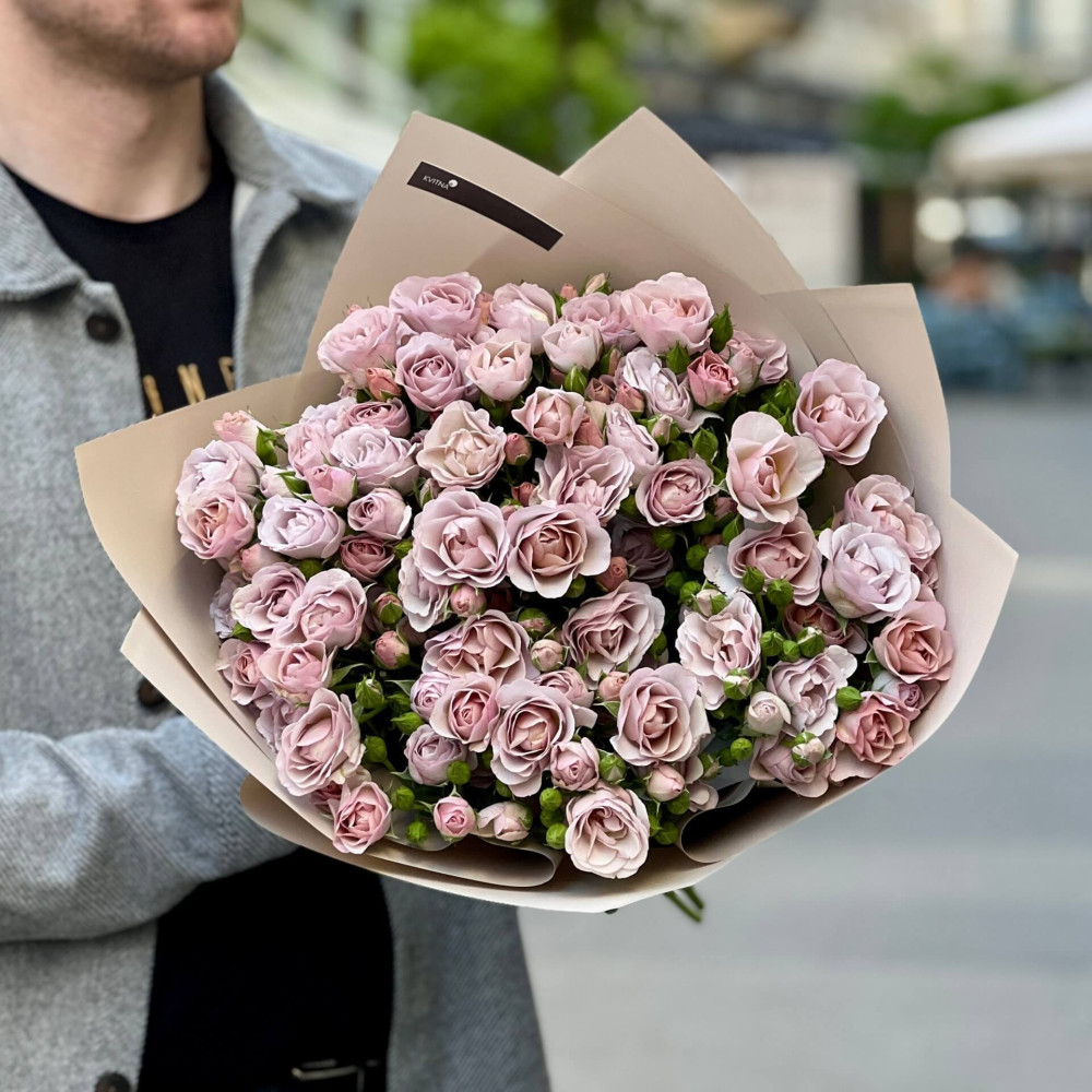 - Як замовити Пастельний букет з 9 гілок кущової троянди Innocent «Бузкове мерехтіння»? ❯