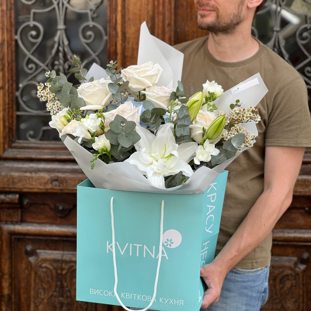 І це, до речі, зовсім не обов'язково плюси, це особливості, які потрібно розуміти. Тоді і вибір «де купити букет у Львові» зробити буде значно простіше.- Кожен букет Kvitna унікальний. Це означає, якщо Ви замовите у нас якийсь із букетів на сайті, то Ви не отримаєте точнісінько такий же. Деяких це бентежить, такі люди не хочуть «ризикувати», бажають «в точності, як на світлині». У «Квітна» кожен букет — це творчий пошук, це захоплення, злиття з квітами, образом одержувача і завданням. Так, ми можемо прийняти за вектор, зробити схожий букет, в тому ж стилі, кольоровій гамі, з тих самих квітів ... Але нам нудно робити за шаблоном. Адже букет, представлений на зображенні, робився для іншої людини, з іншого приводу, під інший настрій і натхнення. У Вас буде все по-іншому.