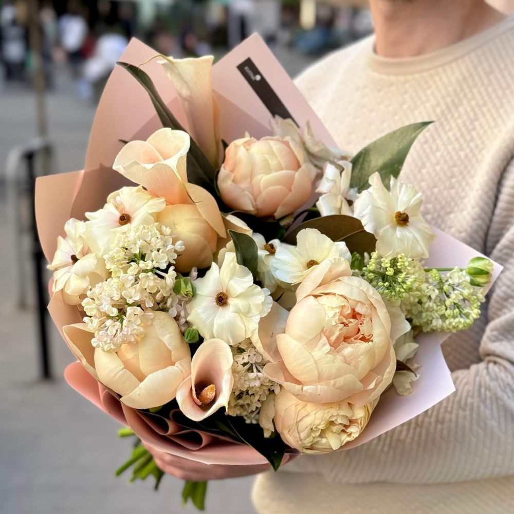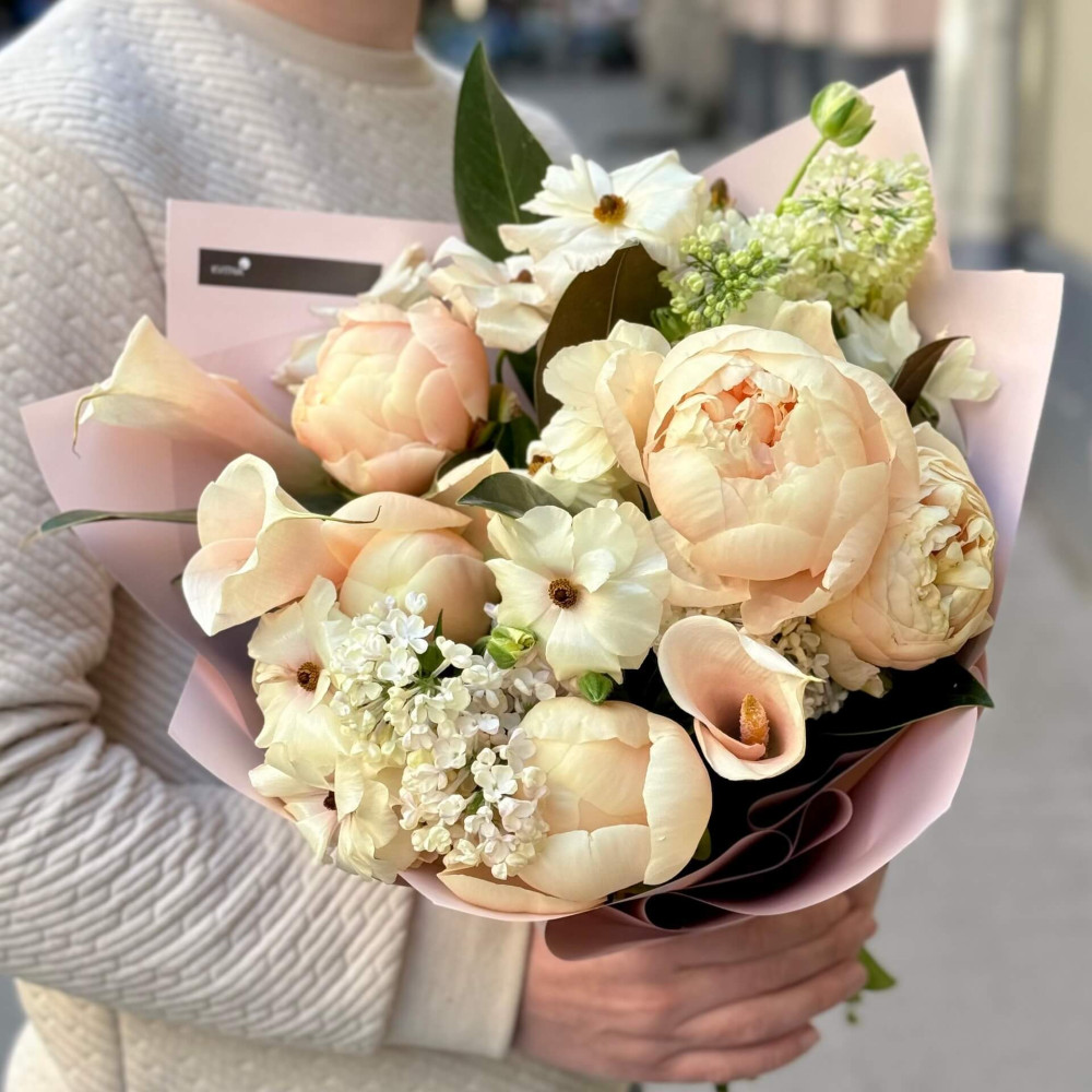 - Як замовити Пастельний букет з півоніями «Сяйво опери»? ❯