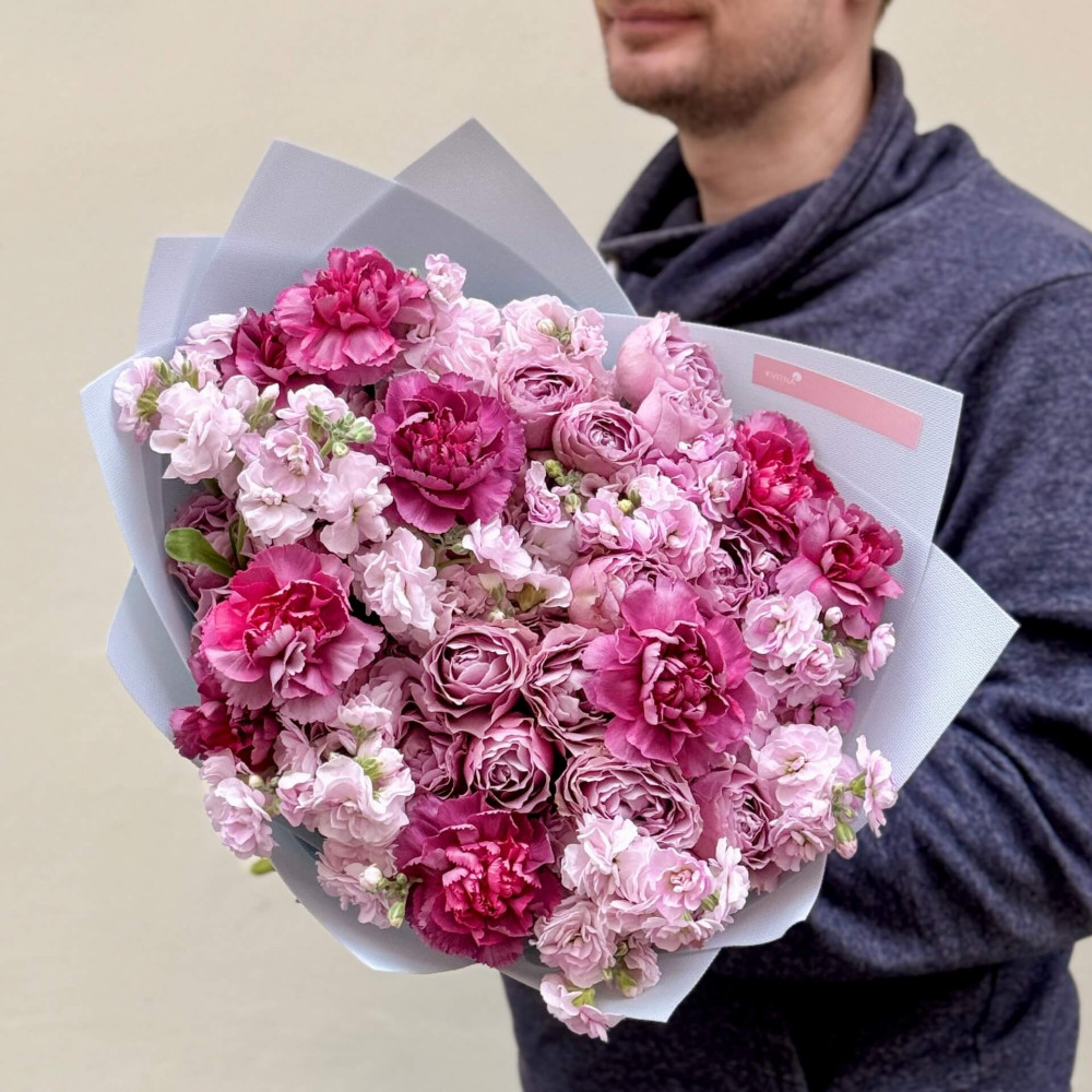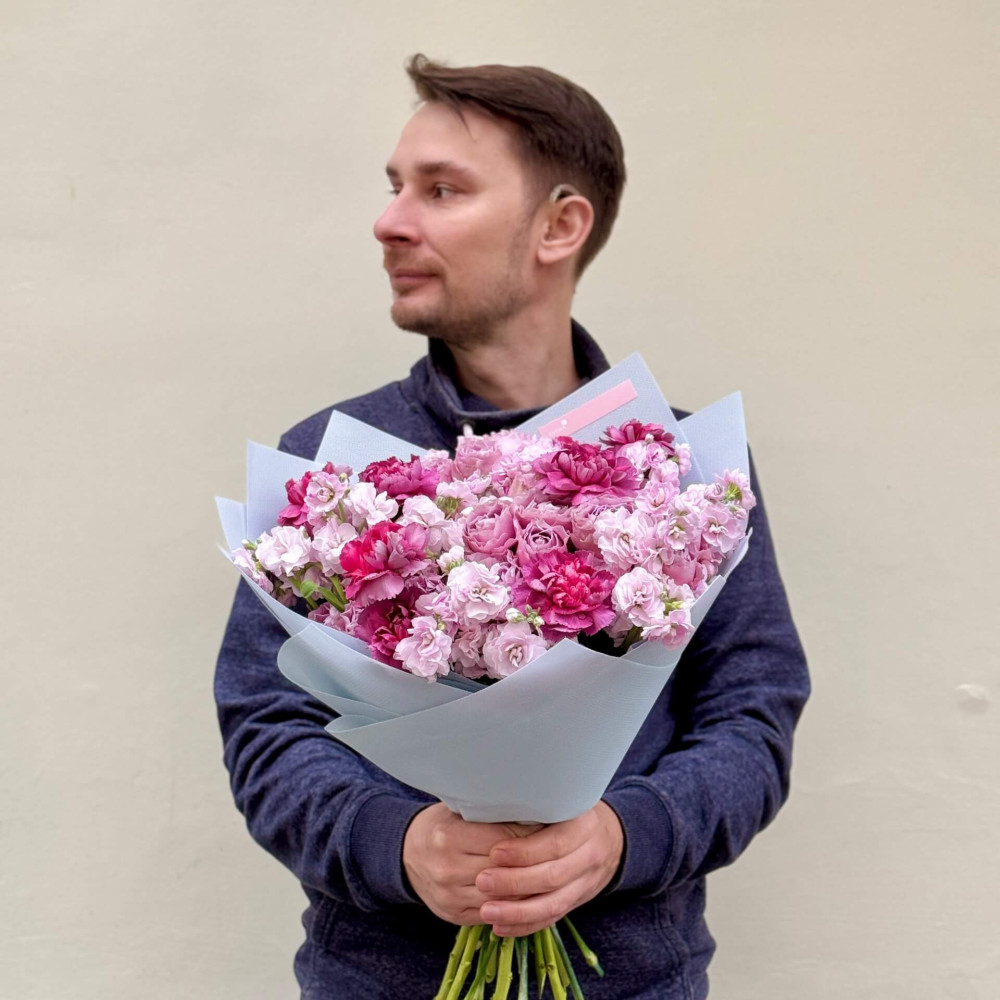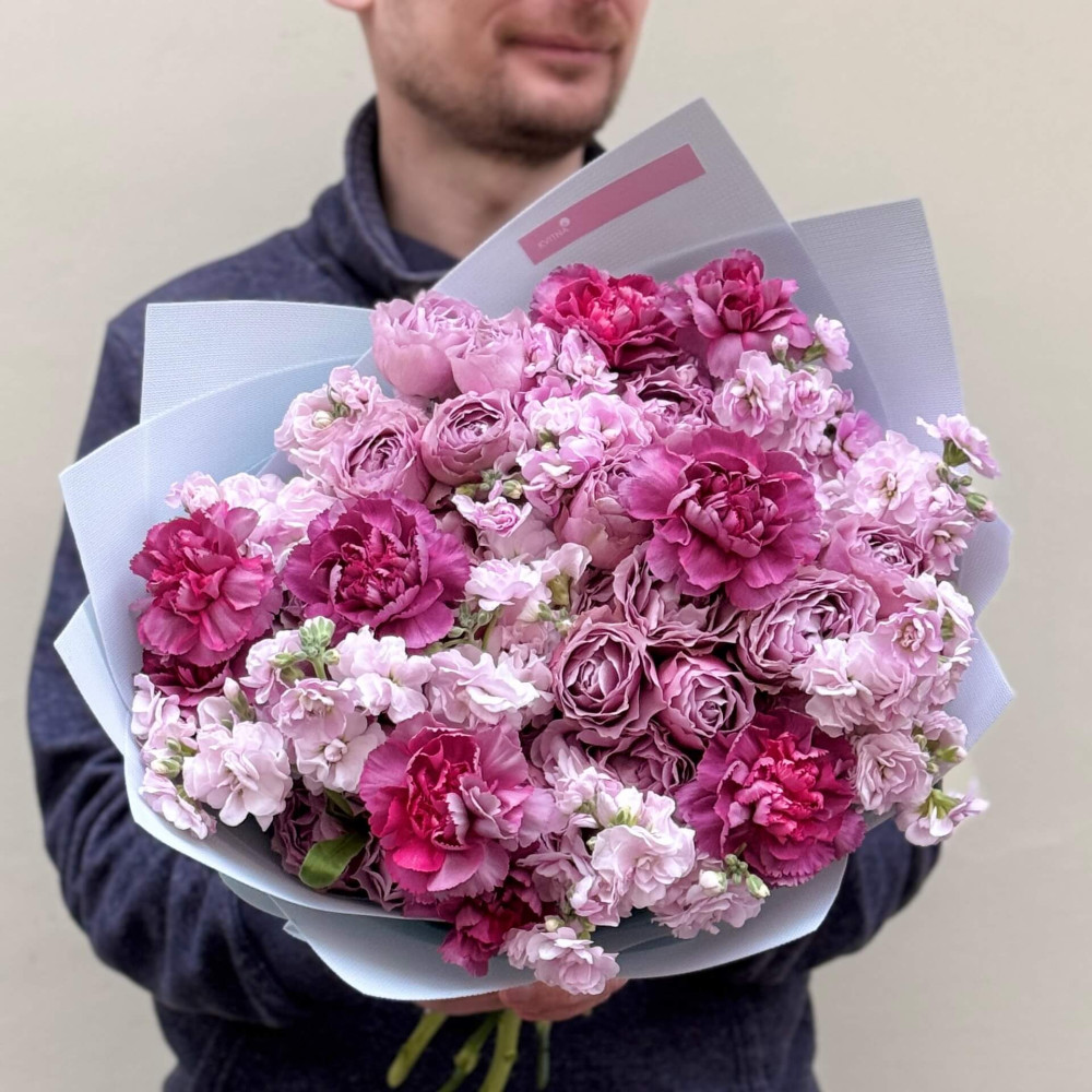 - Як замовити Пастельний букет з кущовою матіолою «Бузковий флер»? ❯