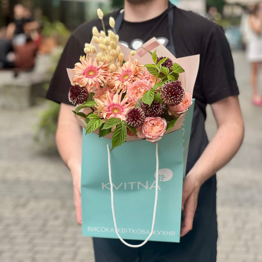 І це, до речі, зовсім не обов'язково плюси, це особливості, які потрібно розуміти. Тоді і вибір «де купити букет у Львові» зробити буде значно простіше.- Кожен букет Kvitna унікальний. Це означає, якщо Ви замовите у нас якийсь із букетів на сайті, то Ви не отримаєте точнісінько такий же. Деяких це бентежить, такі люди не хочуть «ризикувати», бажають «в точності, як на світлині». У «Квітна» кожен букет — це творчий пошук, це захоплення, злиття з квітами, образом одержувача і завданням. Так, ми можемо прийняти за вектор, зробити схожий букет, в тому ж стилі, кольоровій гамі, з тих самих квітів ... Але нам нудно робити за шаблоном. Адже букет, представлений на зображенні, робився для іншої людини, з іншого приводу, під інший настрій і натхнення. У Вас буде все по-іншому.