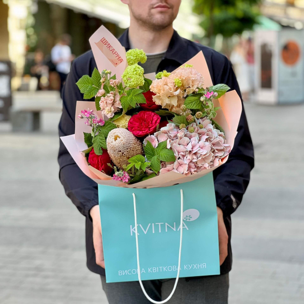 І це, до речі, зовсім не обов'язково плюси, це особливості, які потрібно розуміти. Тоді і вибір «де купити букет у Львові» зробити буде значно простіше.- Кожен букет Kvitna унікальний. Це означає, якщо Ви замовите у нас якийсь із букетів на сайті, то Ви не отримаєте точнісінько такий же. Деяких це бентежить, такі люди не хочуть «ризикувати», бажають «в точності, як на світлині». У «Квітна» кожен букет — це творчий пошук, це захоплення, злиття з квітами, образом одержувача і завданням. Так, ми можемо прийняти за вектор, зробити схожий букет, в тому ж стилі, кольоровій гамі, з тих самих квітів ... Але нам нудно робити за шаблоном. Адже букет, представлений на зображенні, робився для іншої людини, з іншого приводу, під інший настрій і натхнення. У Вас буде все по-іншому.