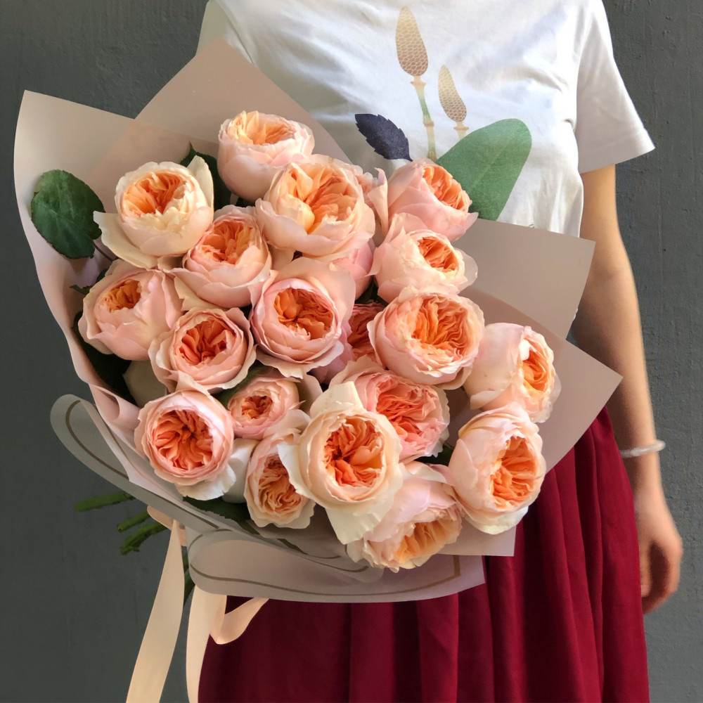 Унікальний і улюблений багатьма сорт англійських садових троянд від David Austin. Ця троянда персикового кольору отримала назву на честь героїні Шекспіра і символізує невинність та чистоту. Букет з 21 троянды Джульєтта - ідеальний подарунок для романтичного побачення.