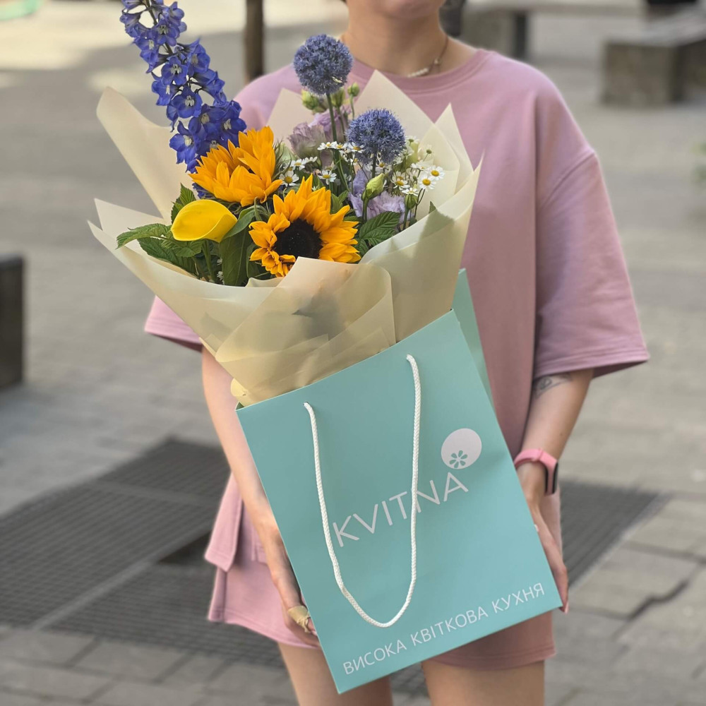 - Букети від Kvitna доставляються у фірмовому пакуванні, яке потрібно зняти при установці квітів у вазу. Не зрізайте стрічку, звʼязуючу букет, щоб зберегти його форму.