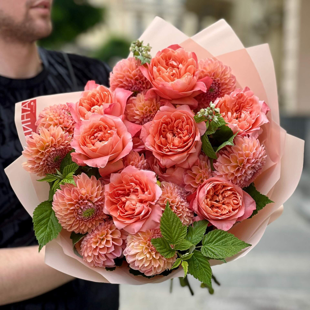 - Як замовити Помаранчевий букет з піоновидною трояндою «Львівський дракон»? ❯
