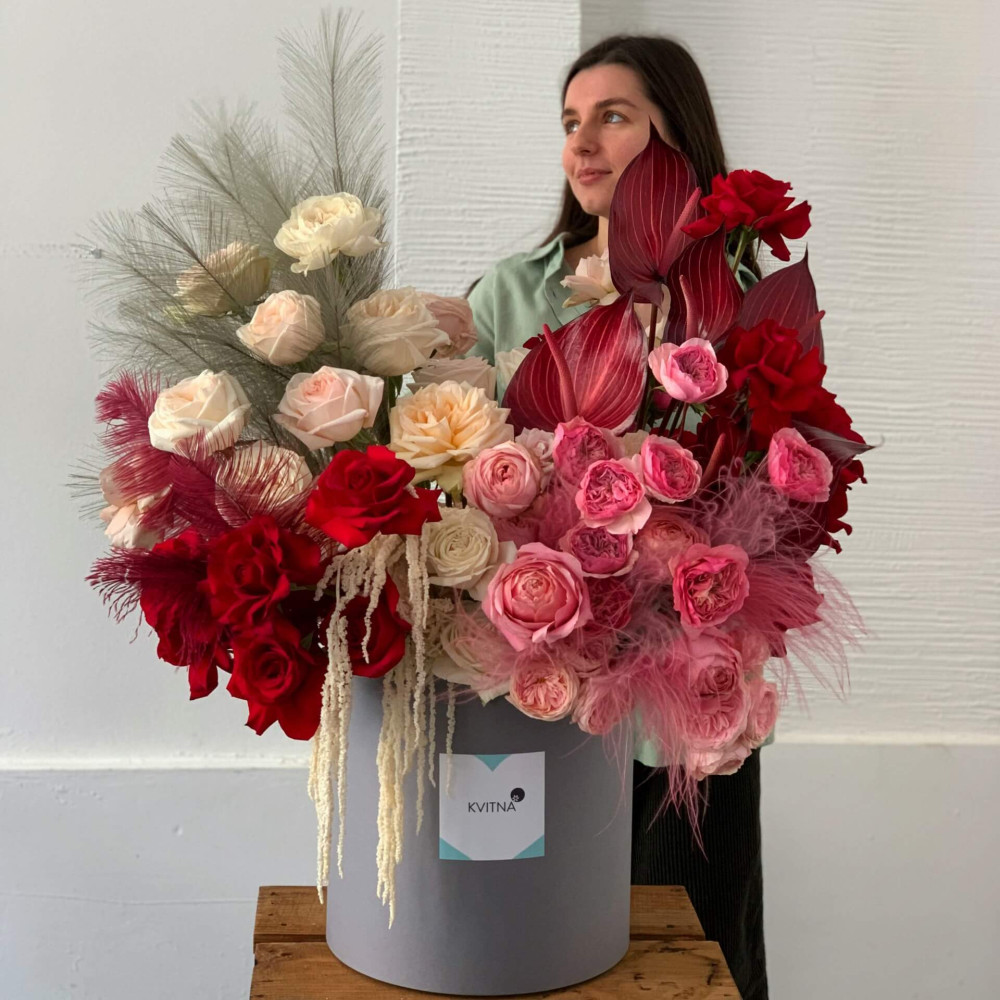 Нехай композиція (коробка, кошик, сніп) з квітами від Квітна тішить Вас якнайдовше!