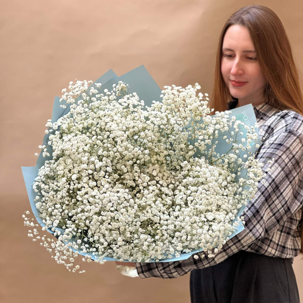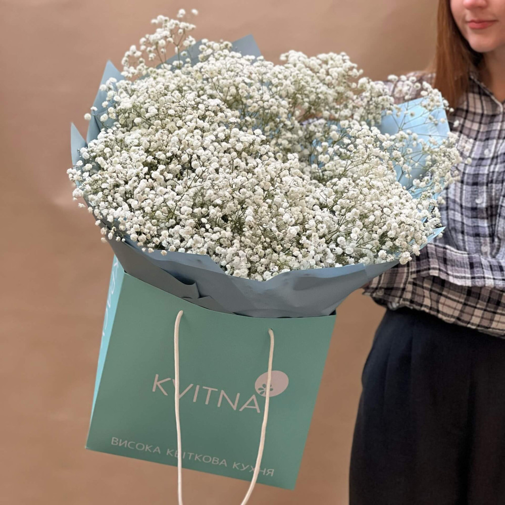 - Як замовити Пухнастий букет із білої гіпсофіли «Хмаринка радості»? ❯
