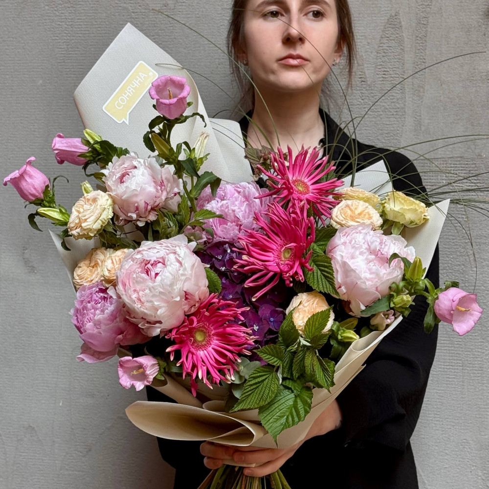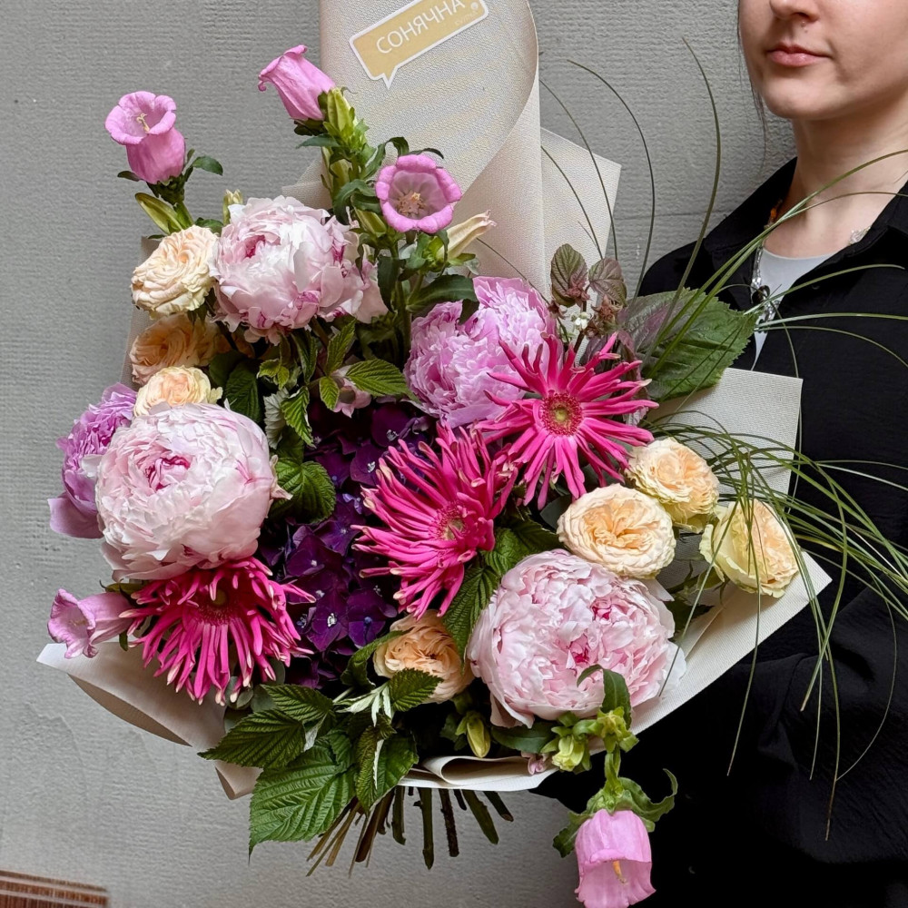 - Як замовити Пухнастий букет з ароматними півоніями «Літня мелодія»? ❯