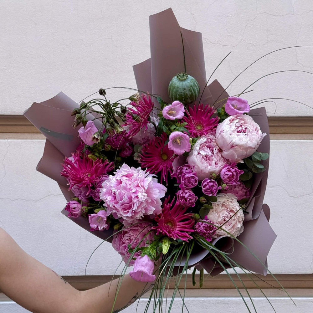 - Як замовити Пухнастий розкішний букет з півоніями «Малиновий шторм»? ❯