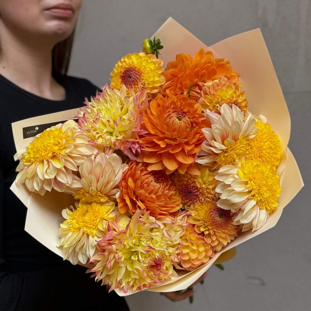 - Як замовити Радісний букет із 17 жоржин «Сонячні Карпати»? ❯