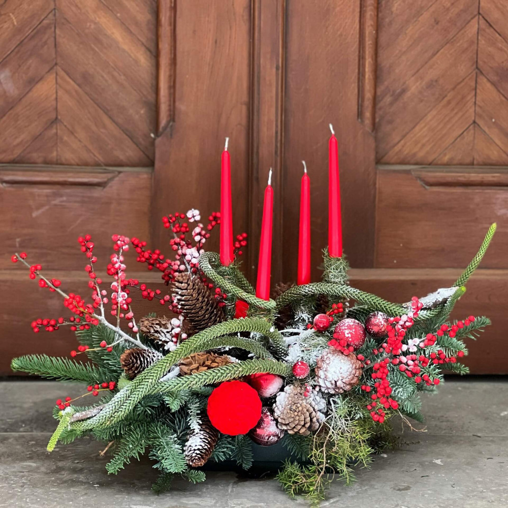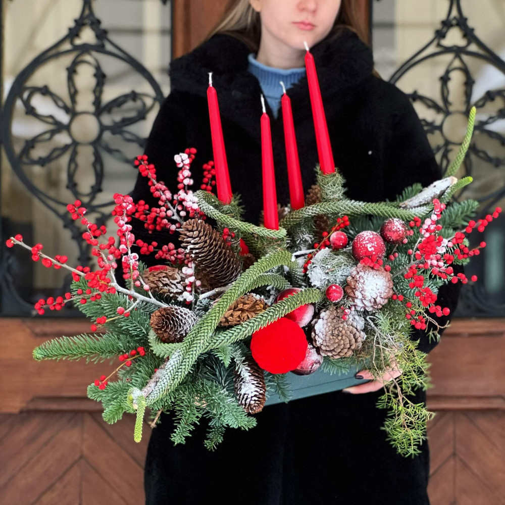 Квіти: Ілекс, Нобіліс (ялинка), Араукарія, Хвоя, Шишки, Декор, Свічки