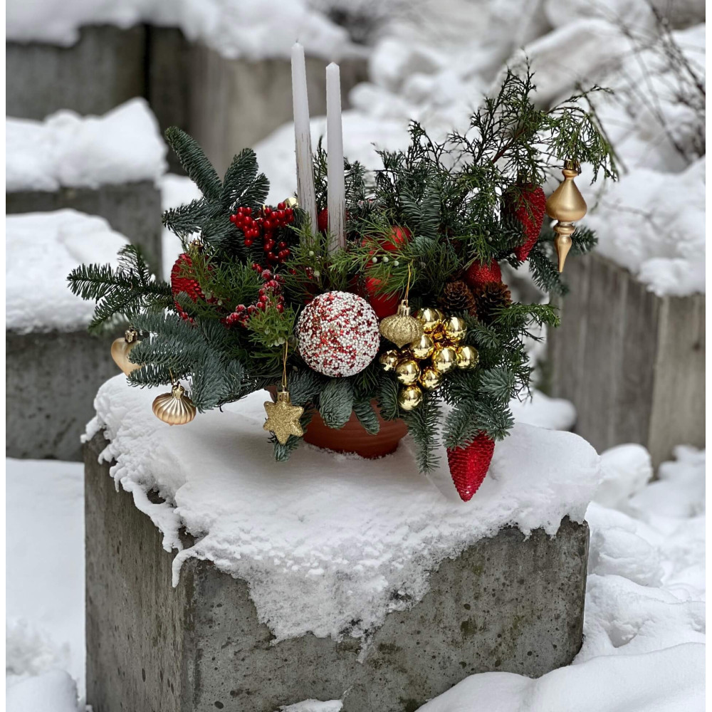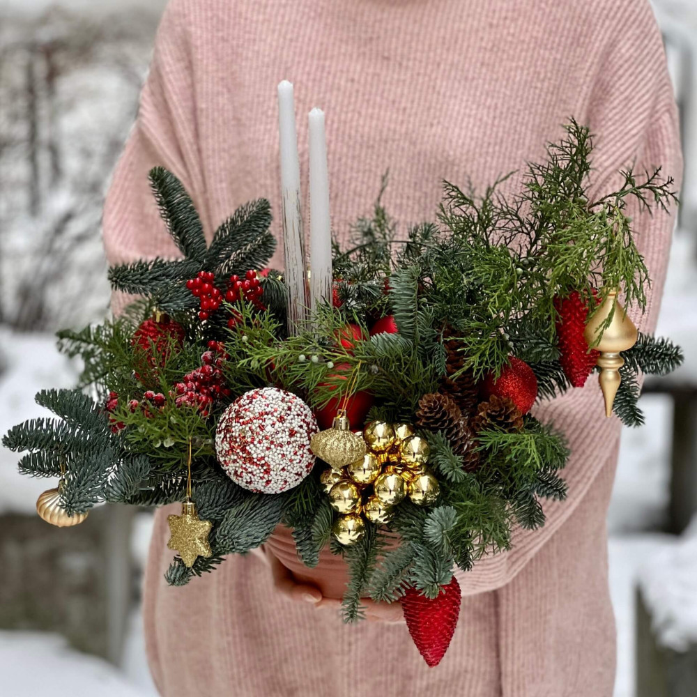 - Як замовити Різдвяна композиція в червоно-золотих відтінках «Різдвяне тепло»? ❯