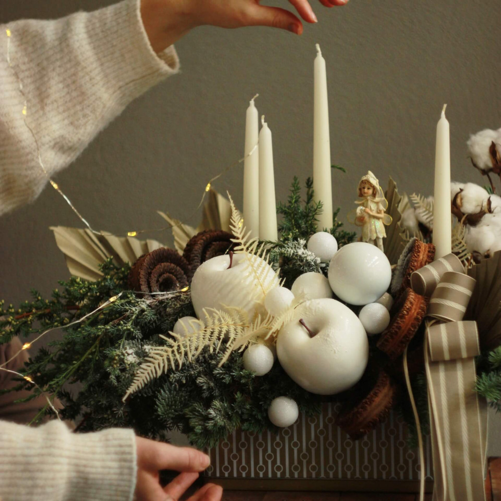 - Як замовити Різдвяна композиція зі свічками «Сімейні обійми»? ❯
