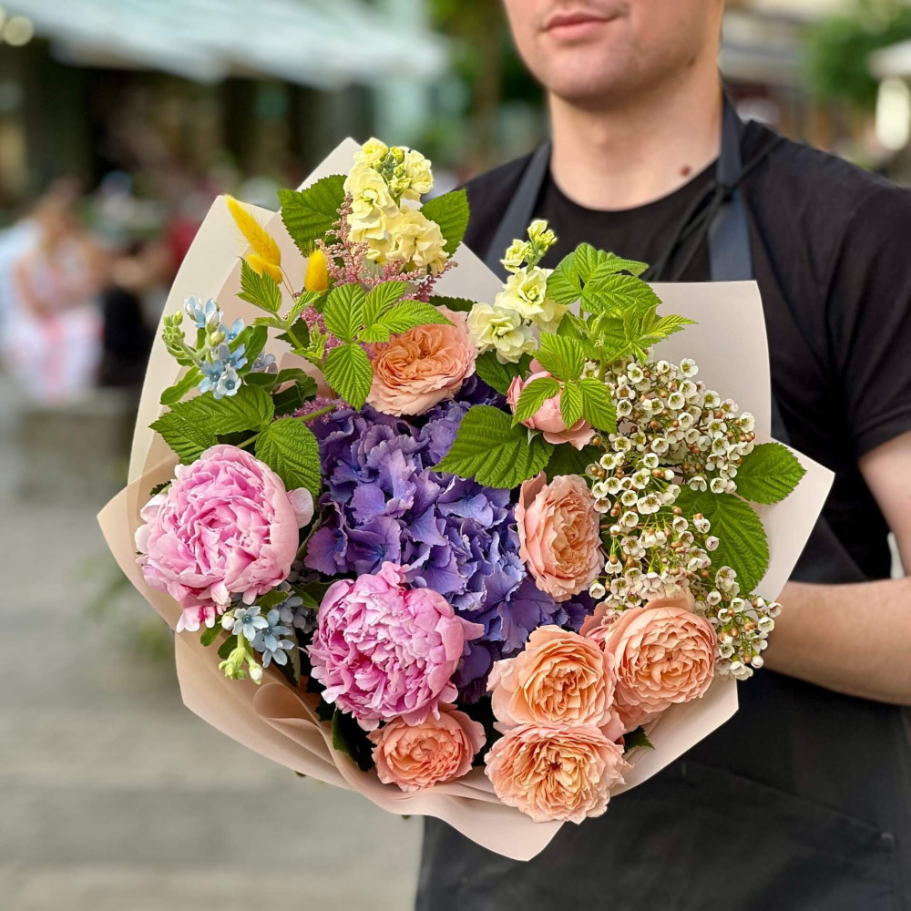 - Як замовити Різнобарвний букет з ароматними півоніями «Акварельний сад»? ❯