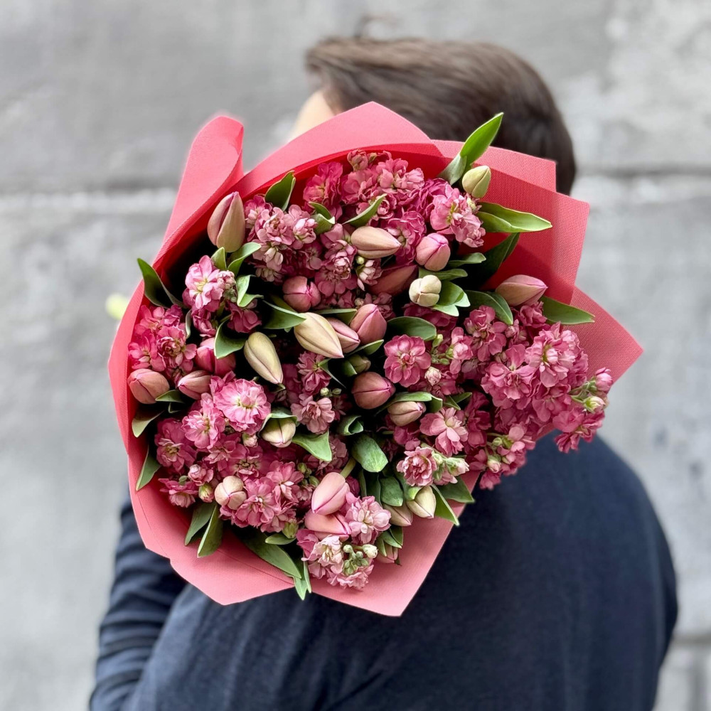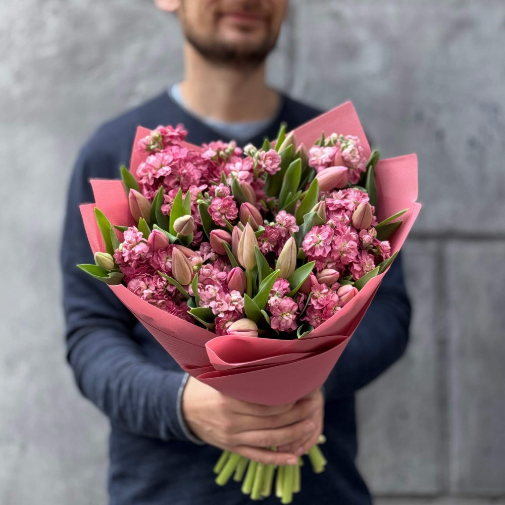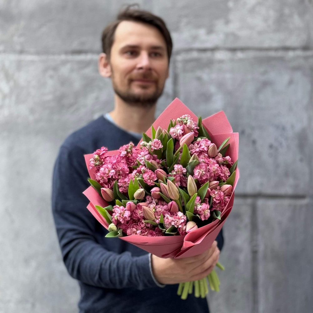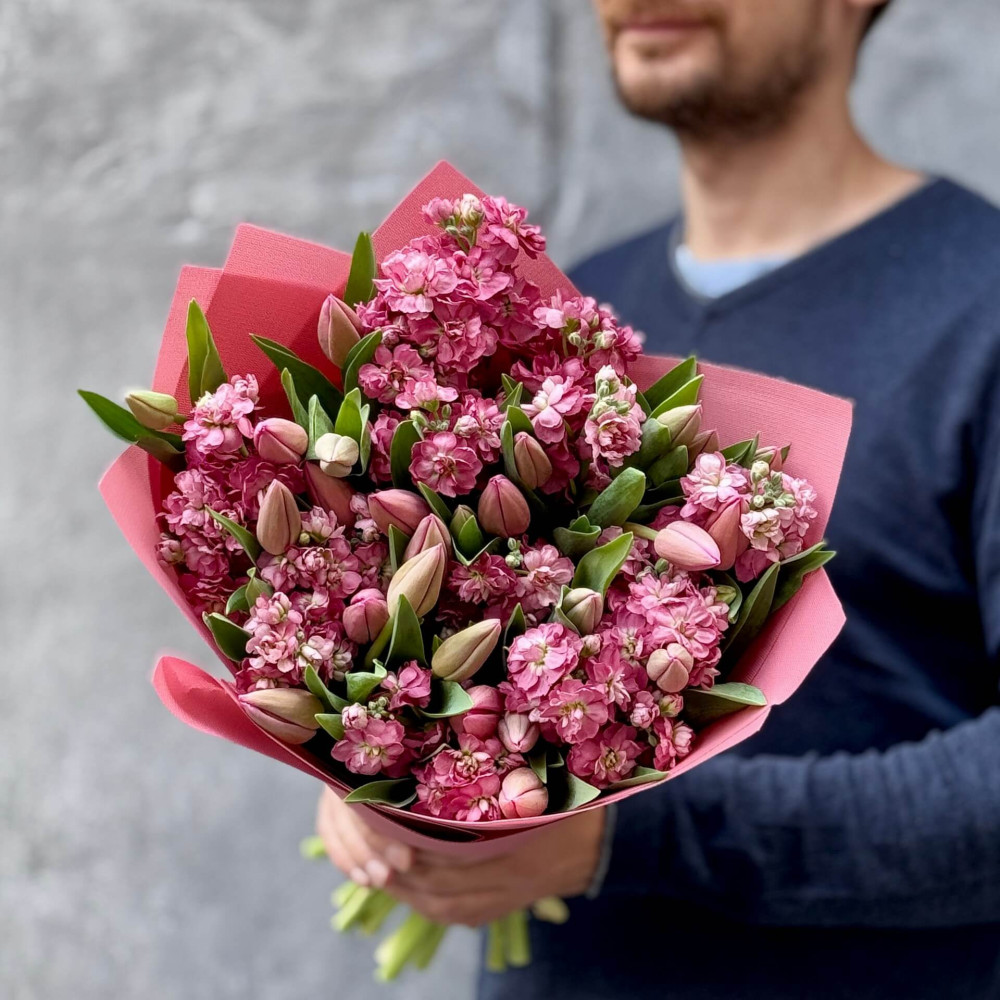 - Як замовити Романтичний ароматний букет із тюльпанів і матіоли «Весняна Надія»? ❯