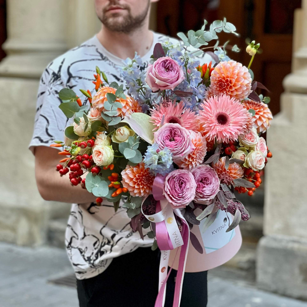 І це, до речі, зовсім не обов'язково плюси, це особливості, які потрібно розуміти. Тоді і вибір «де купити букет у Львові» зробити буде значно простіше.- Кожен букет Kvitna унікальний. Це означає, якщо Ви замовите у нас якийсь із букетів на сайті, то Ви не отримаєте точнісінько такий же. Деяких це бентежить, такі люди не хочуть «ризикувати», бажають «в точності, як на світлині». У «Квітна» кожен букет — це творчий пошук, це захоплення, злиття з квітами, образом одержувача і завданням. Так, ми можемо прийняти за вектор, зробити схожий букет, в тому ж стилі, кольоровій гамі, з тих самих квітів ... Але нам нудно робити за шаблоном. Адже букет, представлений на зображенні, робився для іншої людини, з іншого приводу, під інший настрій і натхнення. У Вас буде все по-іншому.